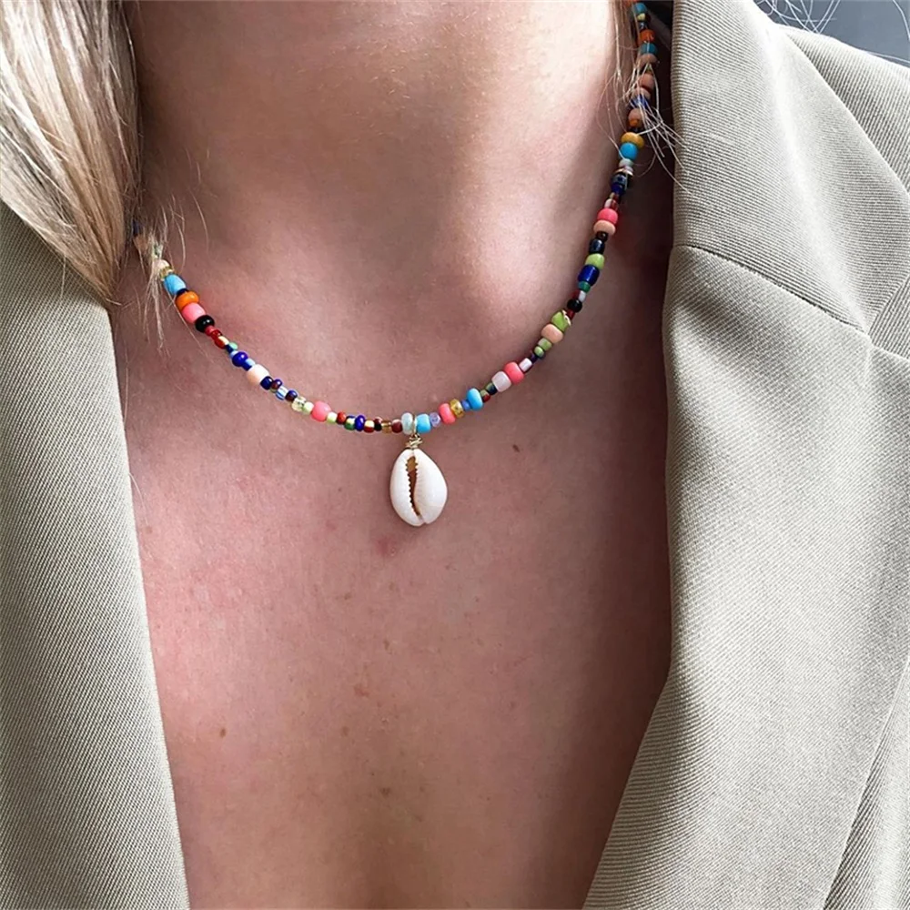 victoria’s vogue Bohemian Colorful Bead Shell Necklace for Women Summer Short Beaded Collar Clavicle Choker Necklace Female Jewelry