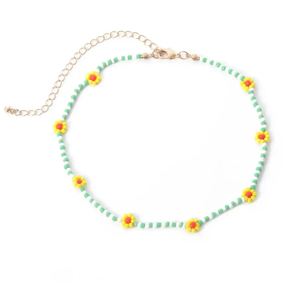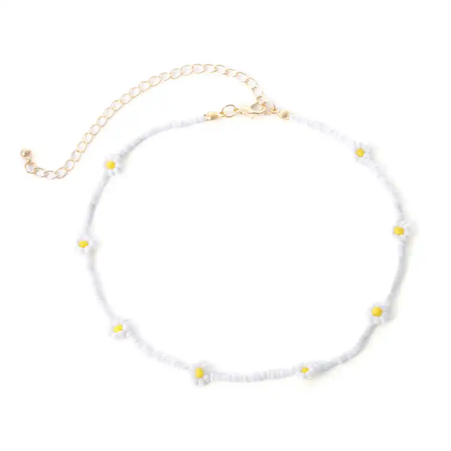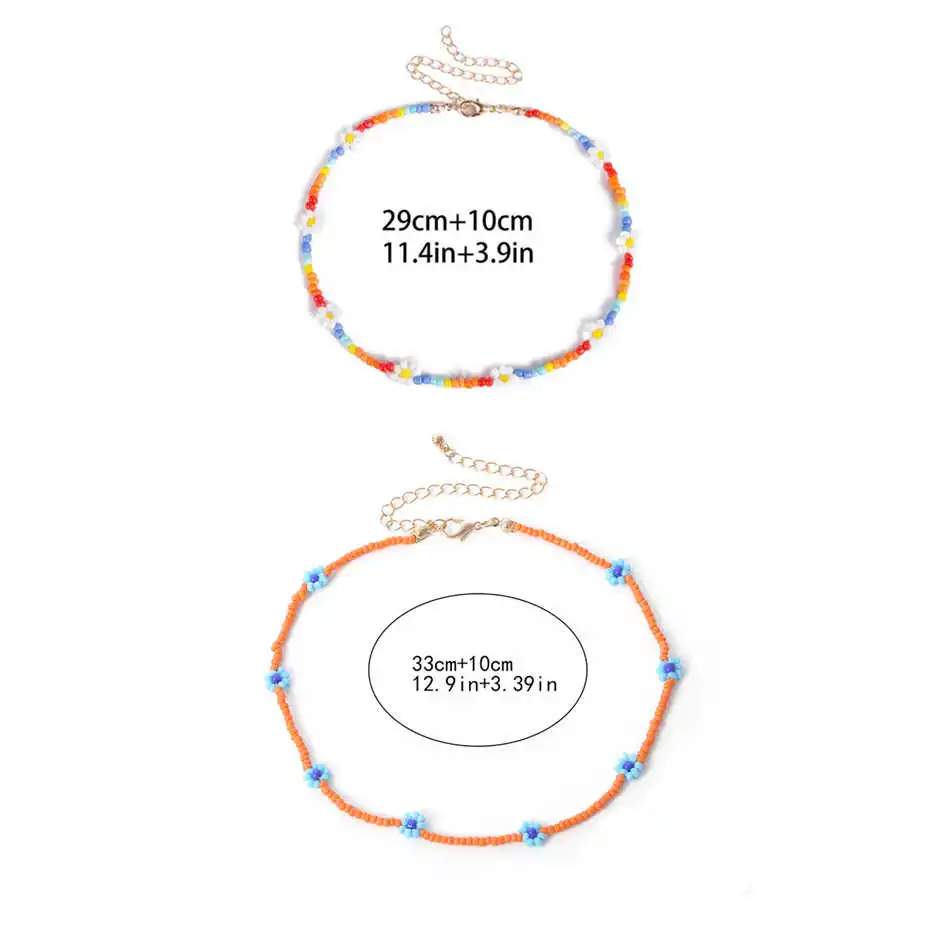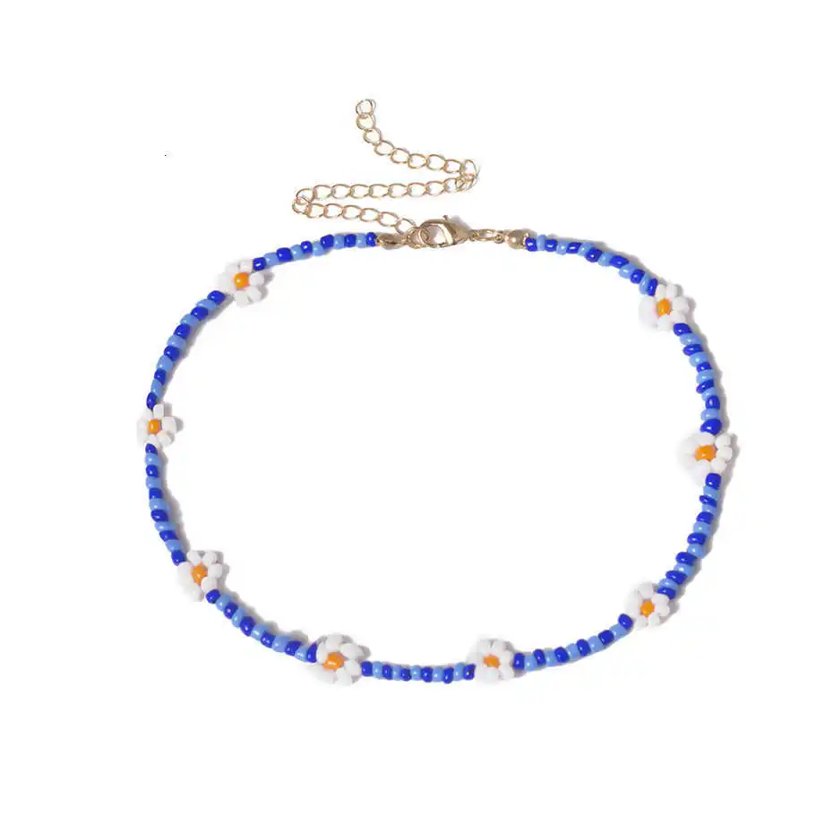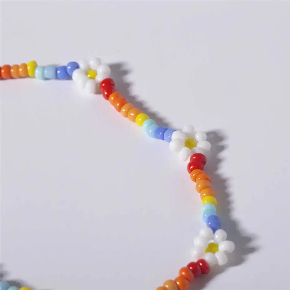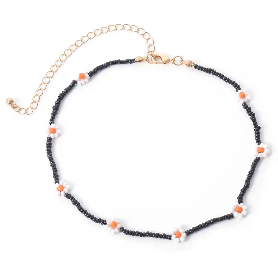 Victoria’s Vogue Bohemian Colorful Seed Bead Flower Choker Necklace Statement Short Collar Clavicle Chain Necklace for Women Jewelry