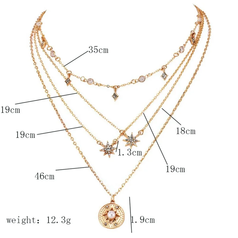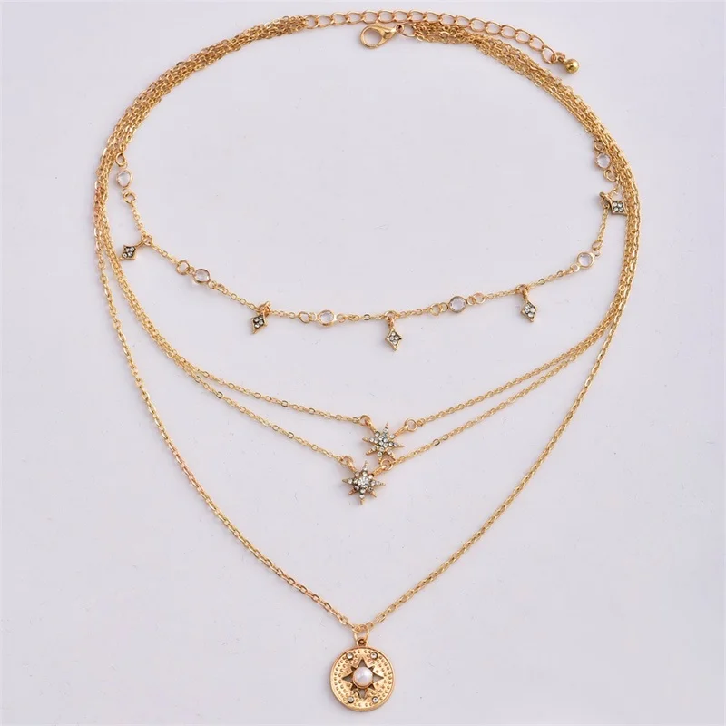 victoria’s vogue Bohemian Fashion Delicate Geometric Crystal Tassel Rhinestone Star Pendant Multilayer Gold Necklace Women