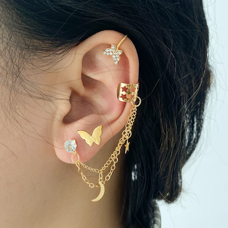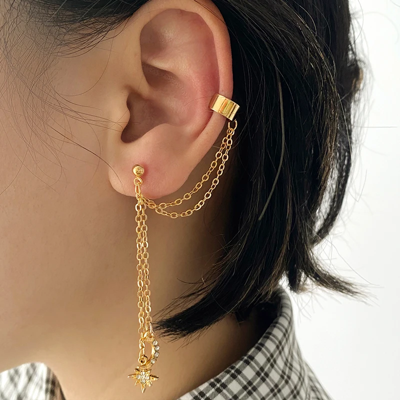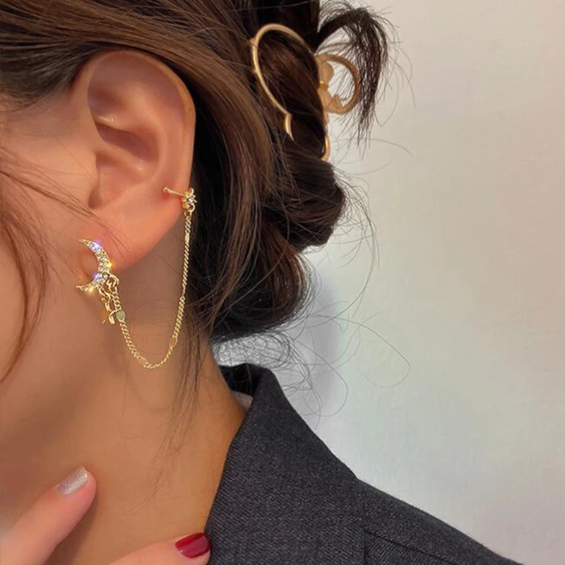 victoria’s vogue Bohemian Gold Color Long Chain Drop Earrings For Women Girls Fashion Leaves Star Moon Dangle Earrings Party Jewelry Gifts