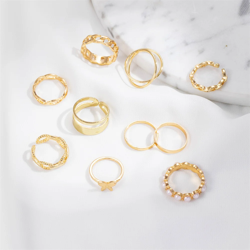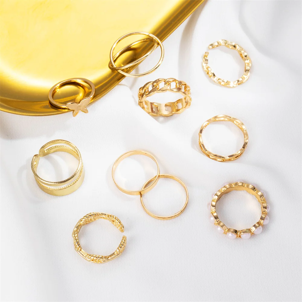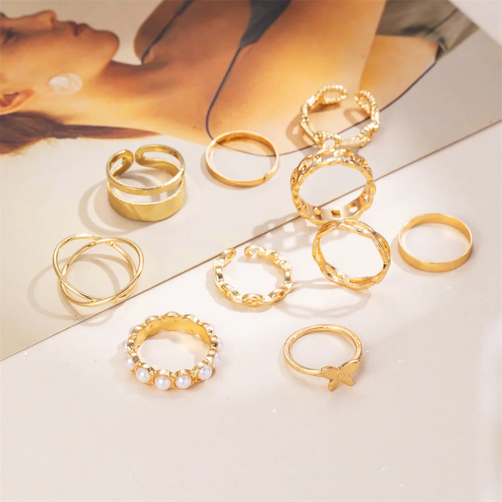 victoria’s vogue Bohemian Gold Geometric Hollw Out Wide Ring Set Women’s Vintage Butterfly Circle Joint Ring Boho Finger Rings Jewelry