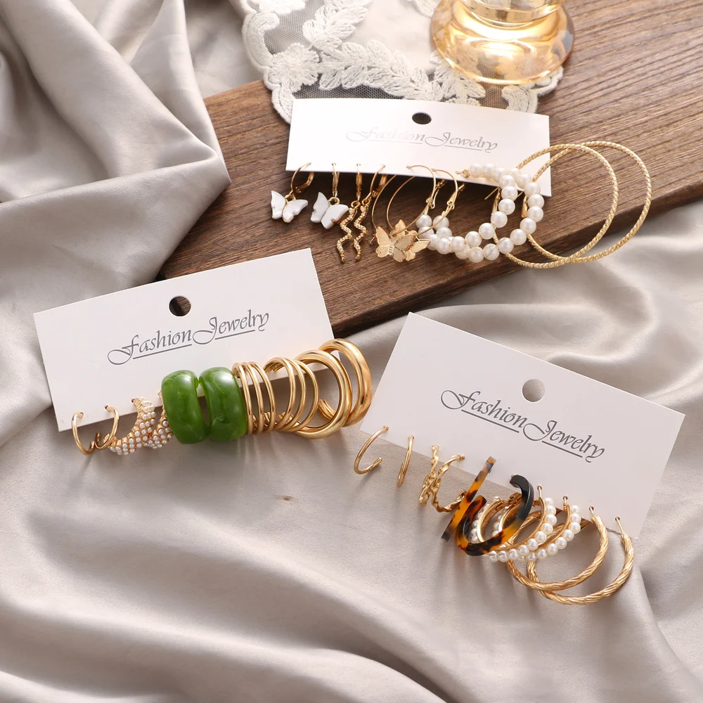 victoria’s vogue Bohemian Gold Snake Pearl Drop Earring Set for Female Pearl Acrylic Butterfly Geometric Dangle Earring Trend Jewelry Gift