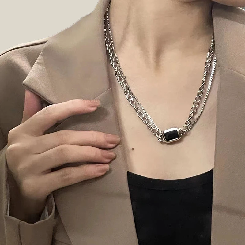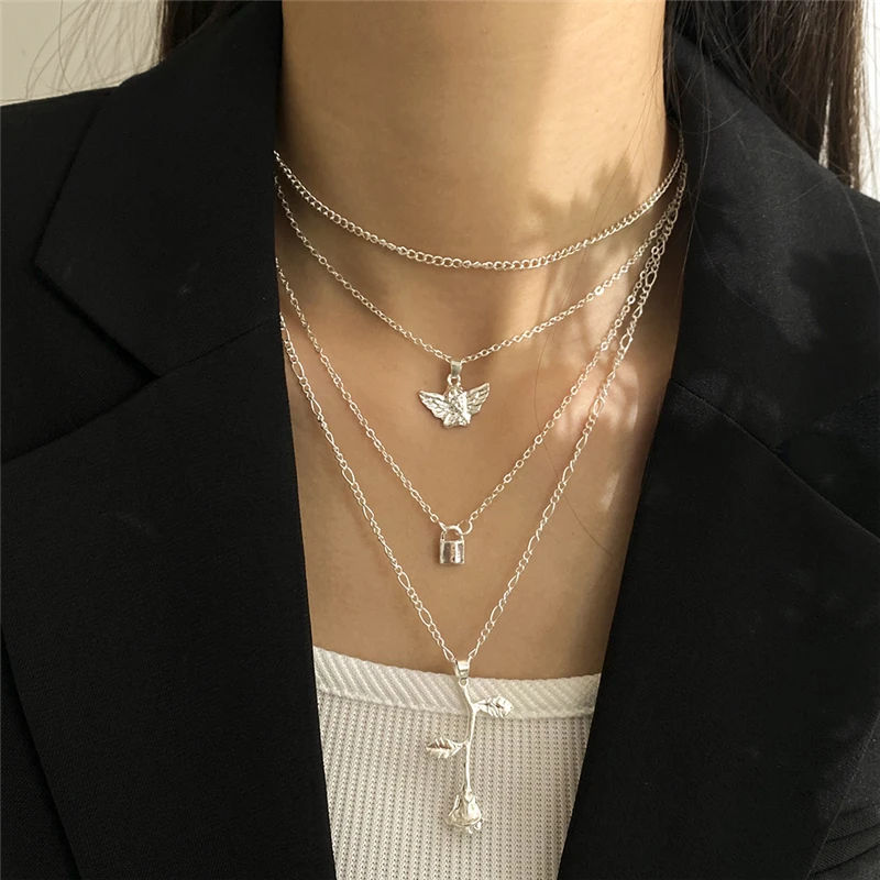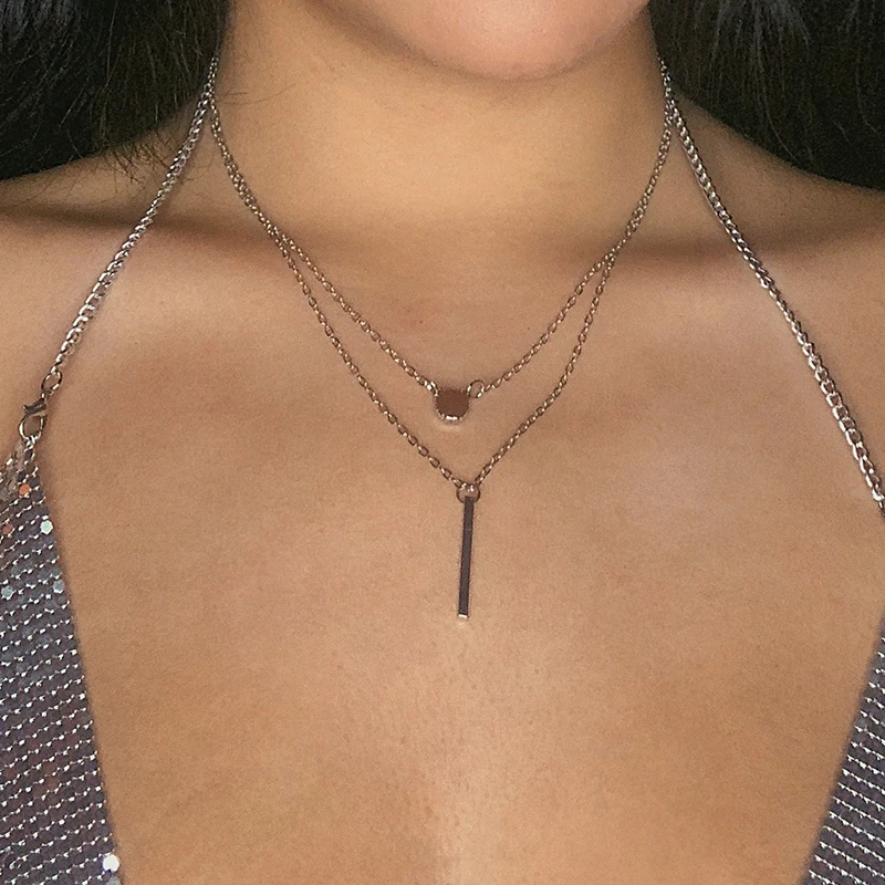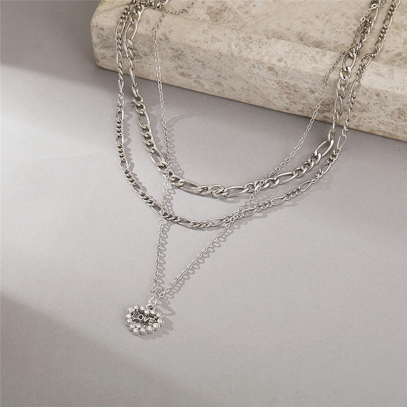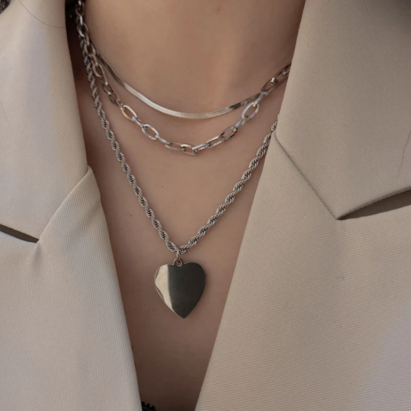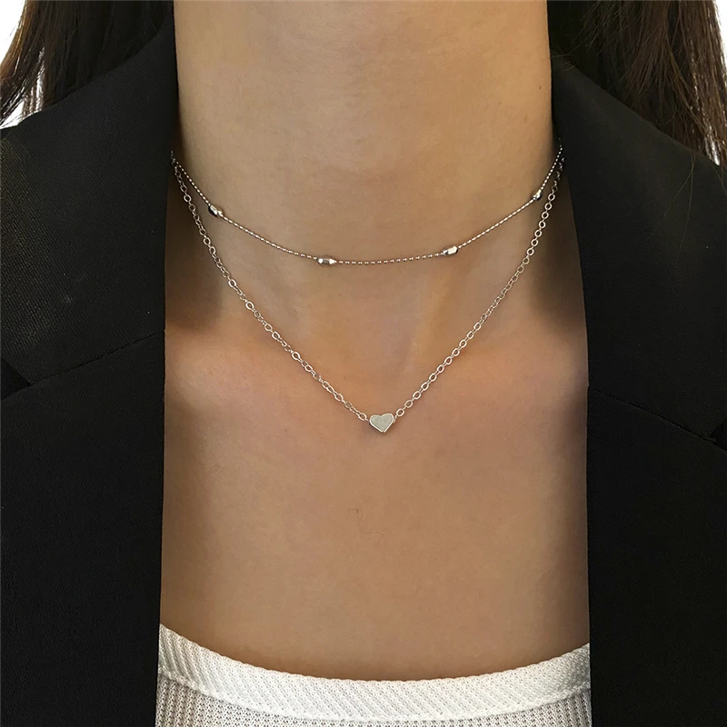victoria’s vogue Bohemian Silver Color Heart Necklace For Women Girls Multilayer Geometric Hollow Heart Necklace Jewelry Party