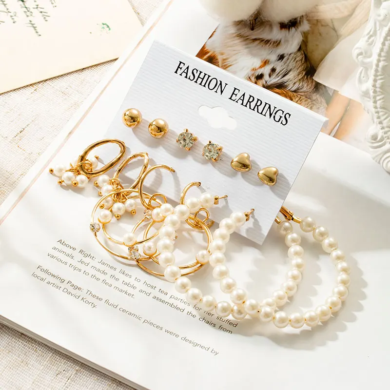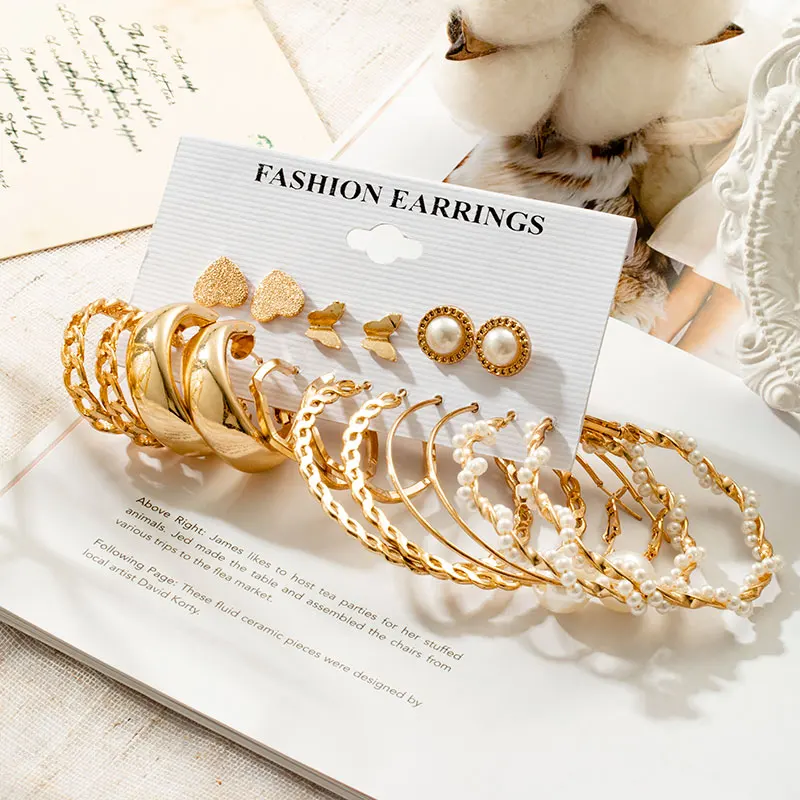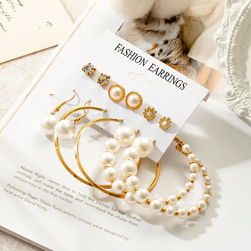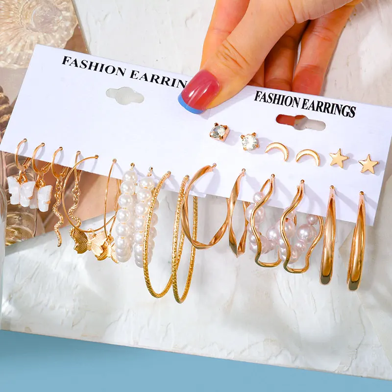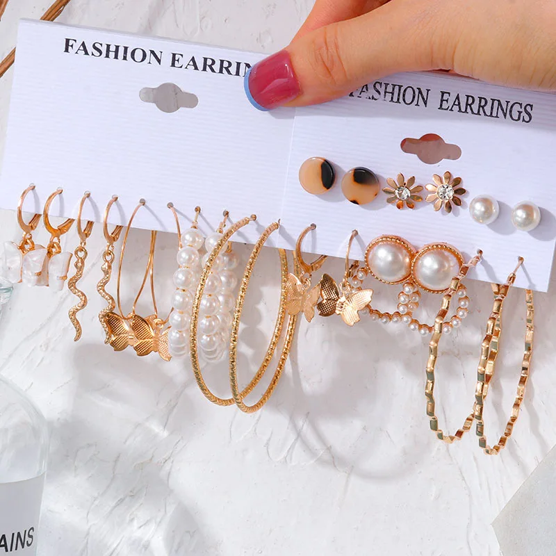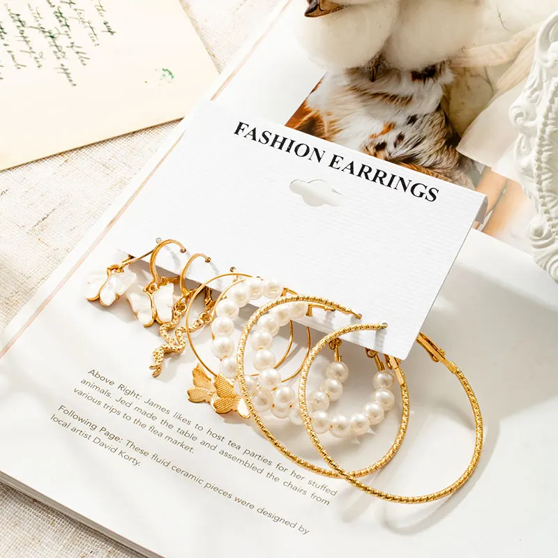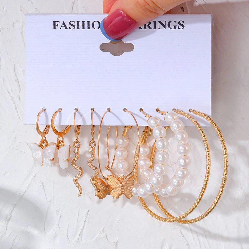 victoria’s vogue Bohemian Trendy Butterfly Snake Pearl Drop Earrings Set For Women Fashion Acrylic Metal Earrings Gold Set of Earrings Jewelry