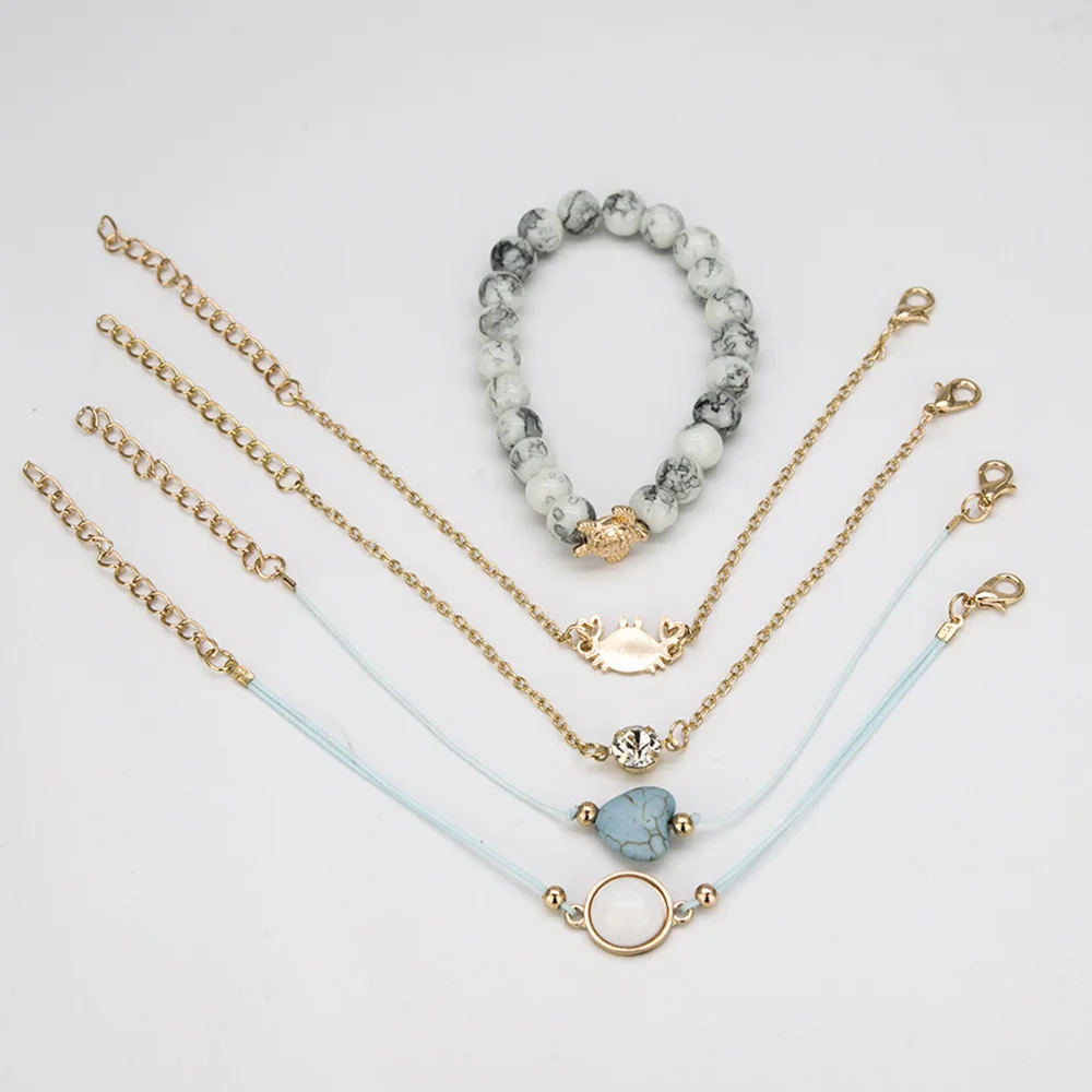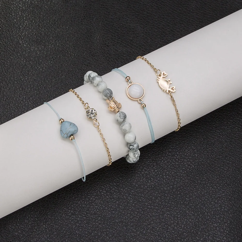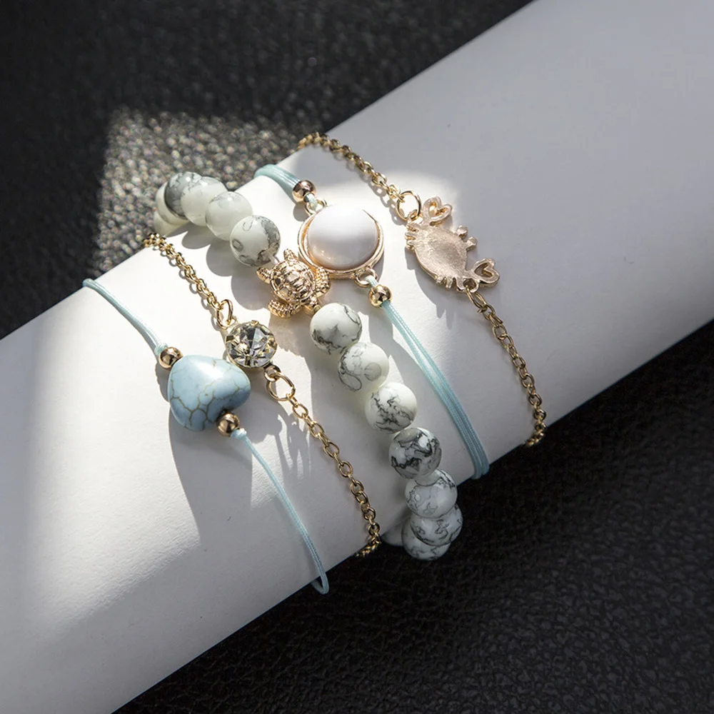 Victoria’s Vogue Boho Crab Heart Charm Bracelets Set For Women New Design Stone Beads Infinite Statement Bracelet Vintage Jewelry