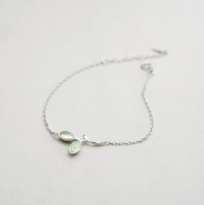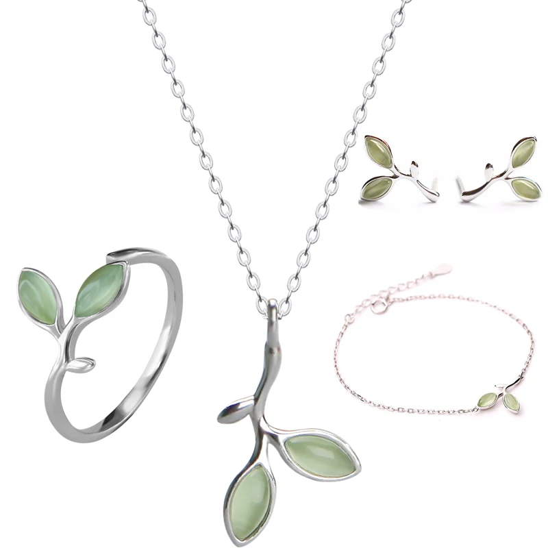 victoria’s vogue Boho Fashion Opal Jewelry Sets 925 Sterling Silver green leaves Necklaces Charm Bracelet Ring for Women Statement Jewelry