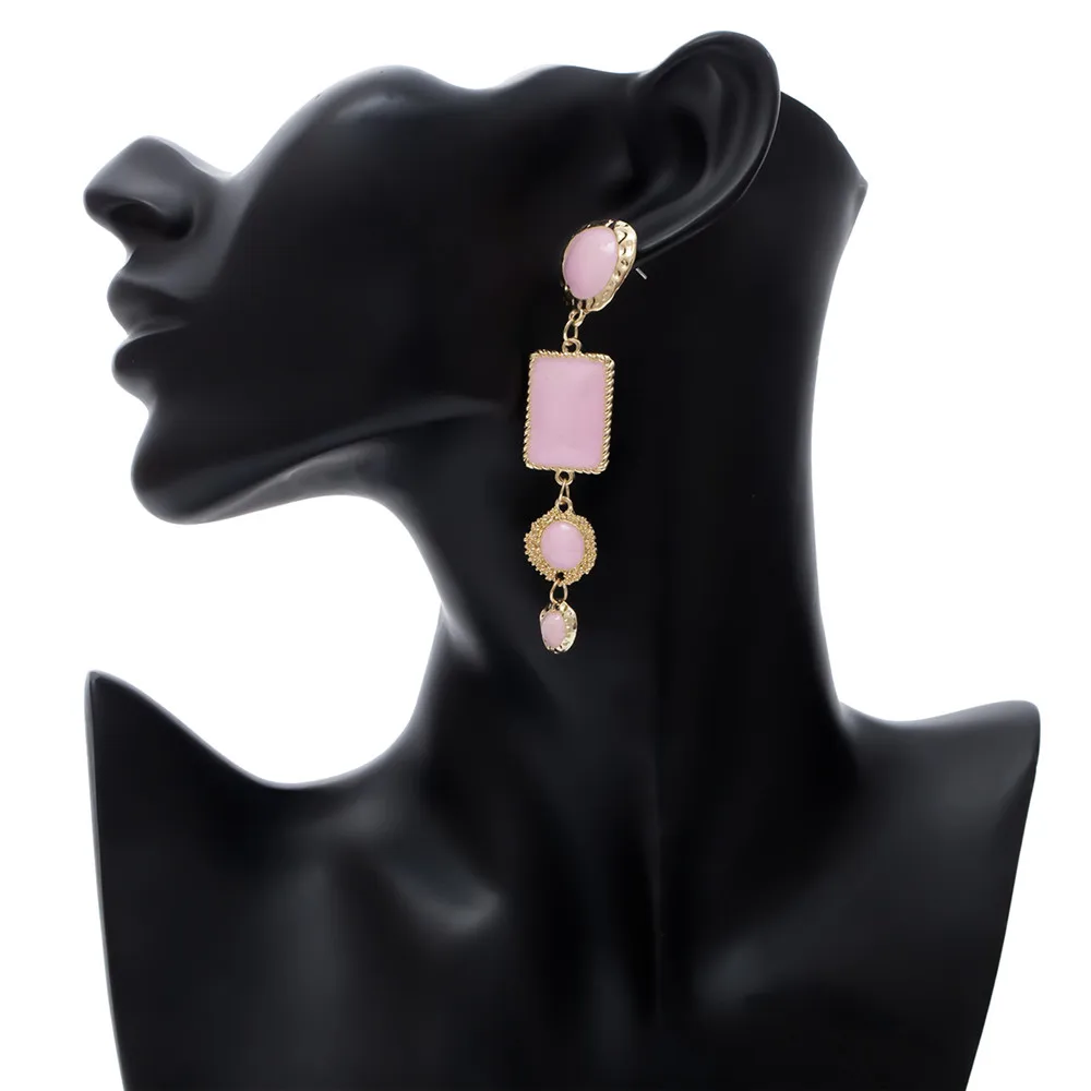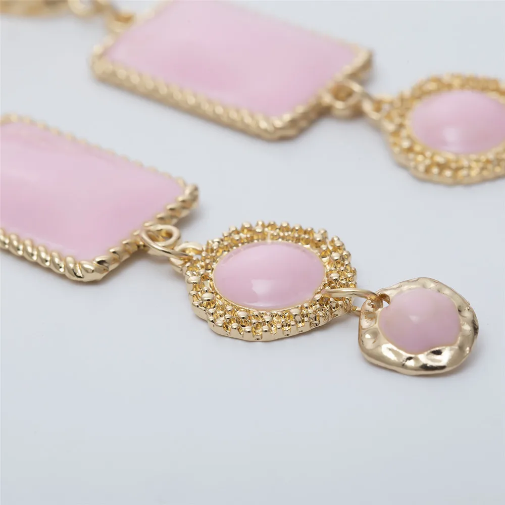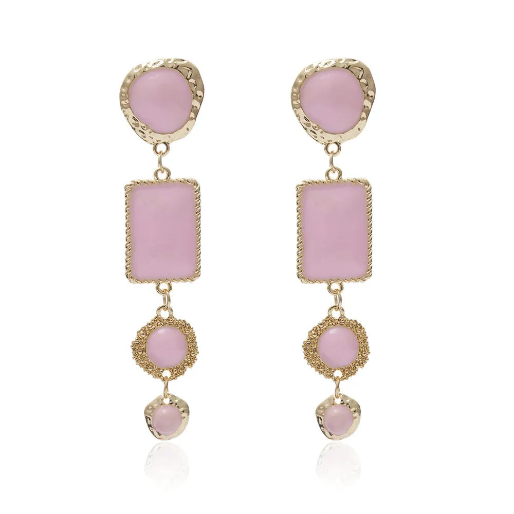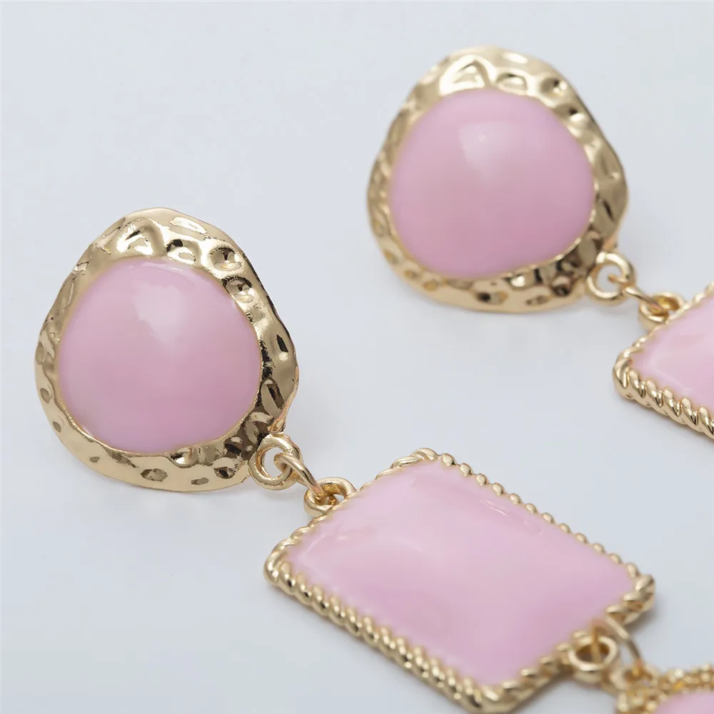 Victoria’s Vogue Boho Geometric Pink Stone Gold Border Drop Earrings For Women Gold Punk Dangle Earring Brincos Statement Jewelry Party Gift