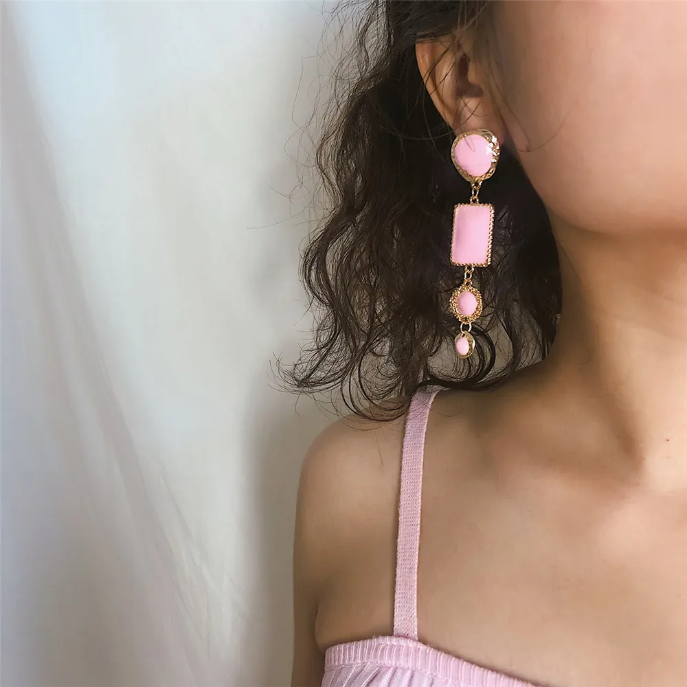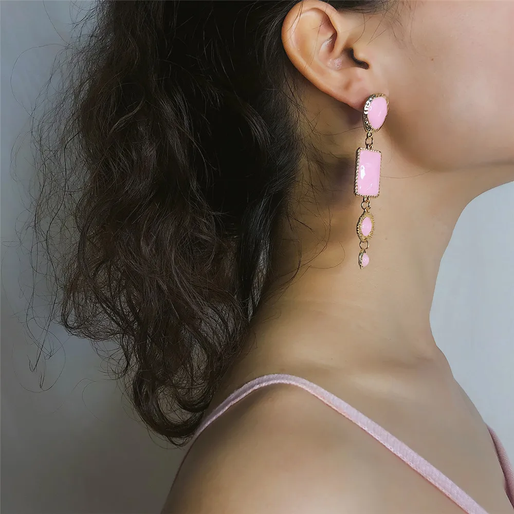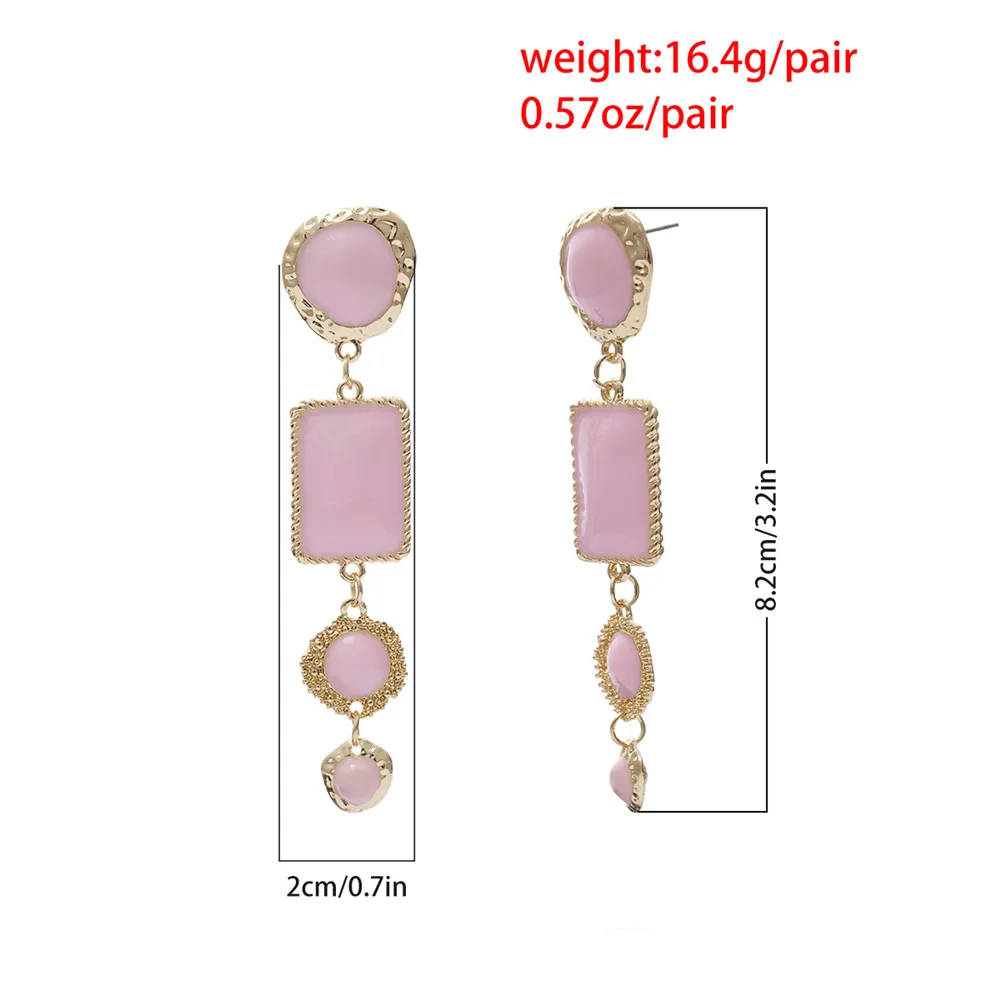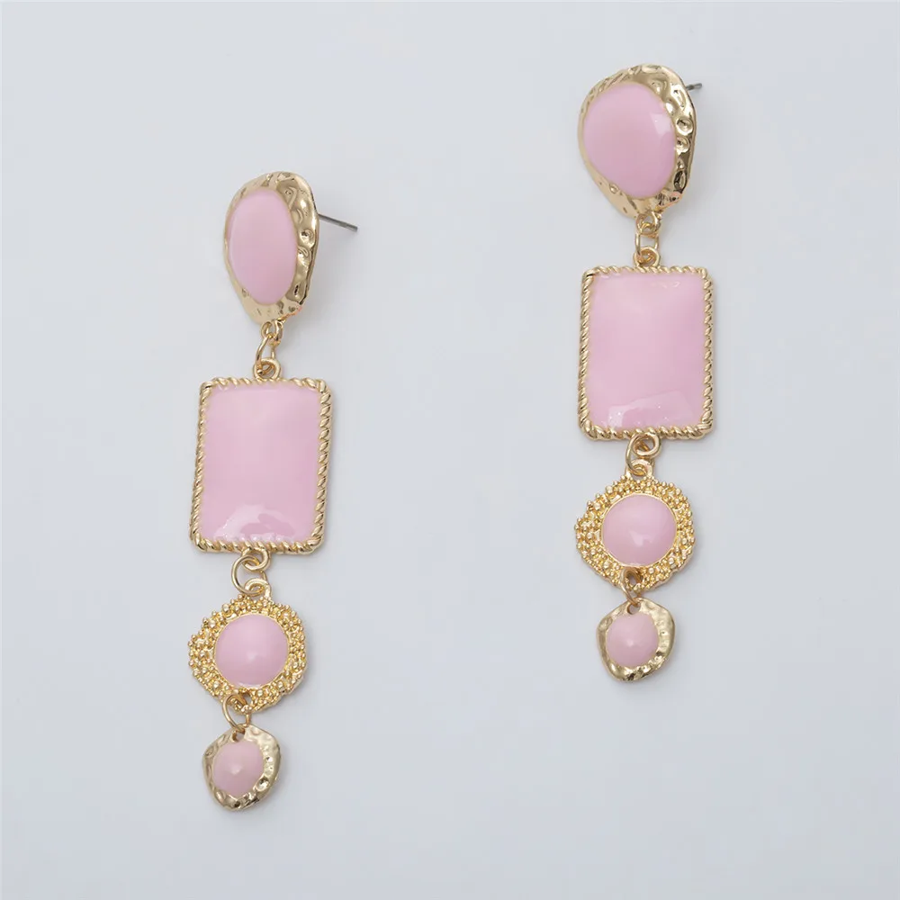 Victoria’s Vogue Boho Geometric Pink Stone Gold Border Drop Earrings For Women Gold Punk Dangle Earring Brincos Statement Jewelry Party Gift