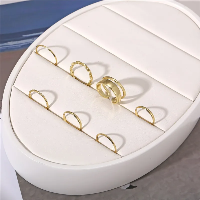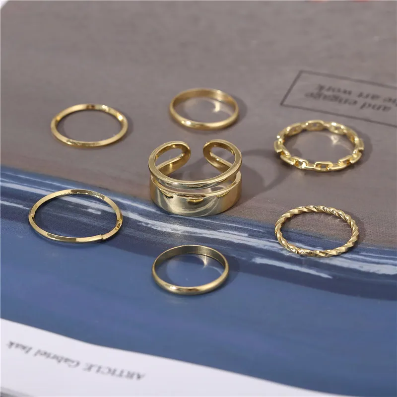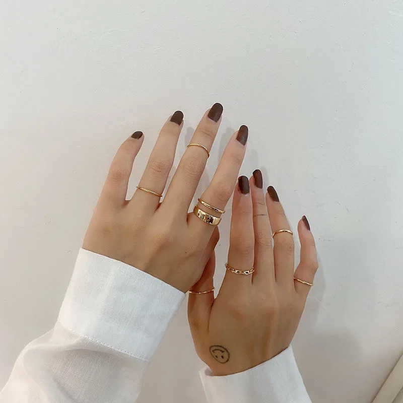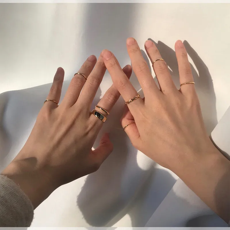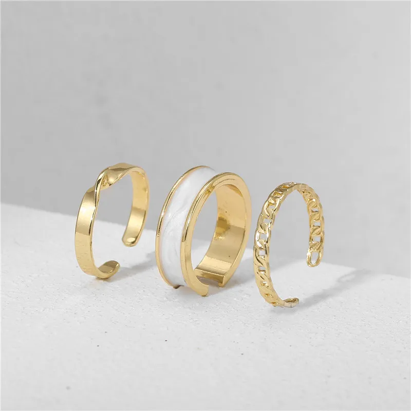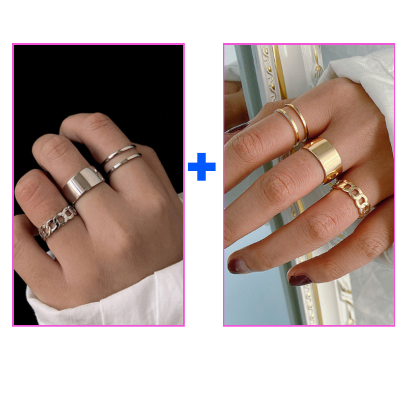 victoria’s vogue Boho Gold Silver Color Chain Rings Set Wedding Resin Ring For Women Punk Geoemtric Multilayer Rings Jewelry