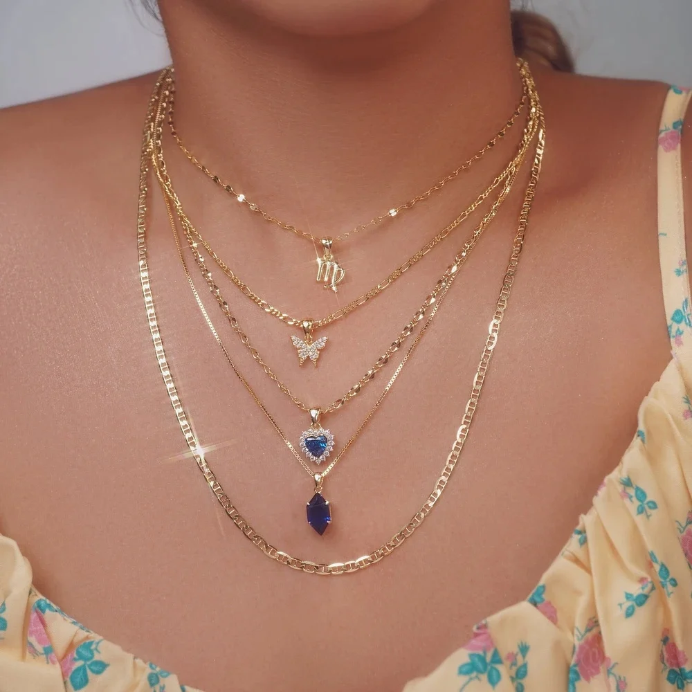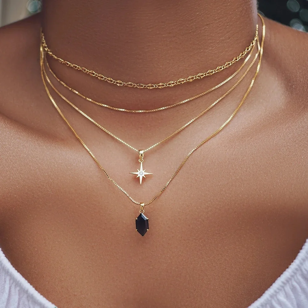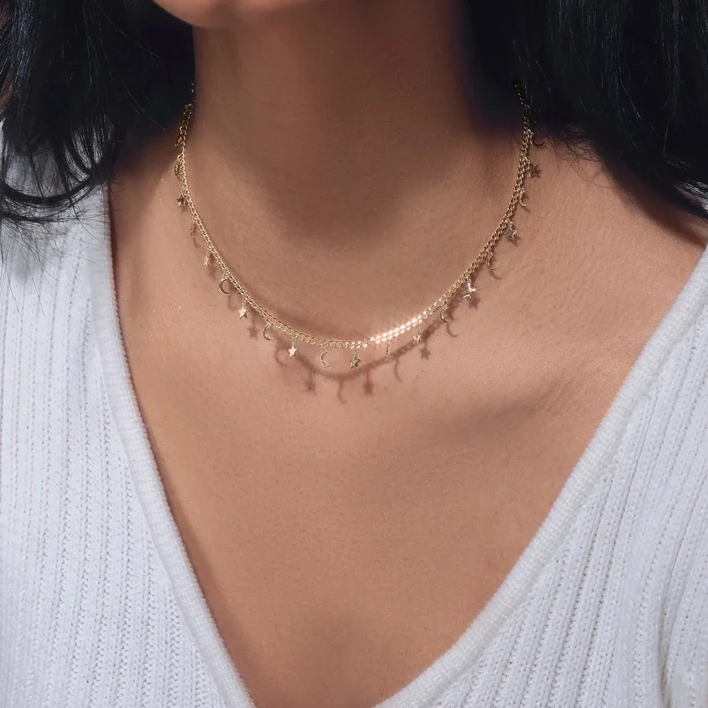 victoria’s vogue Boho Gold Star Butterfly Moon Color Necklace For Women Female Multilevel Vintage Geometric Crystal Pendant Chain Jewelry
