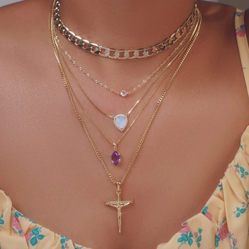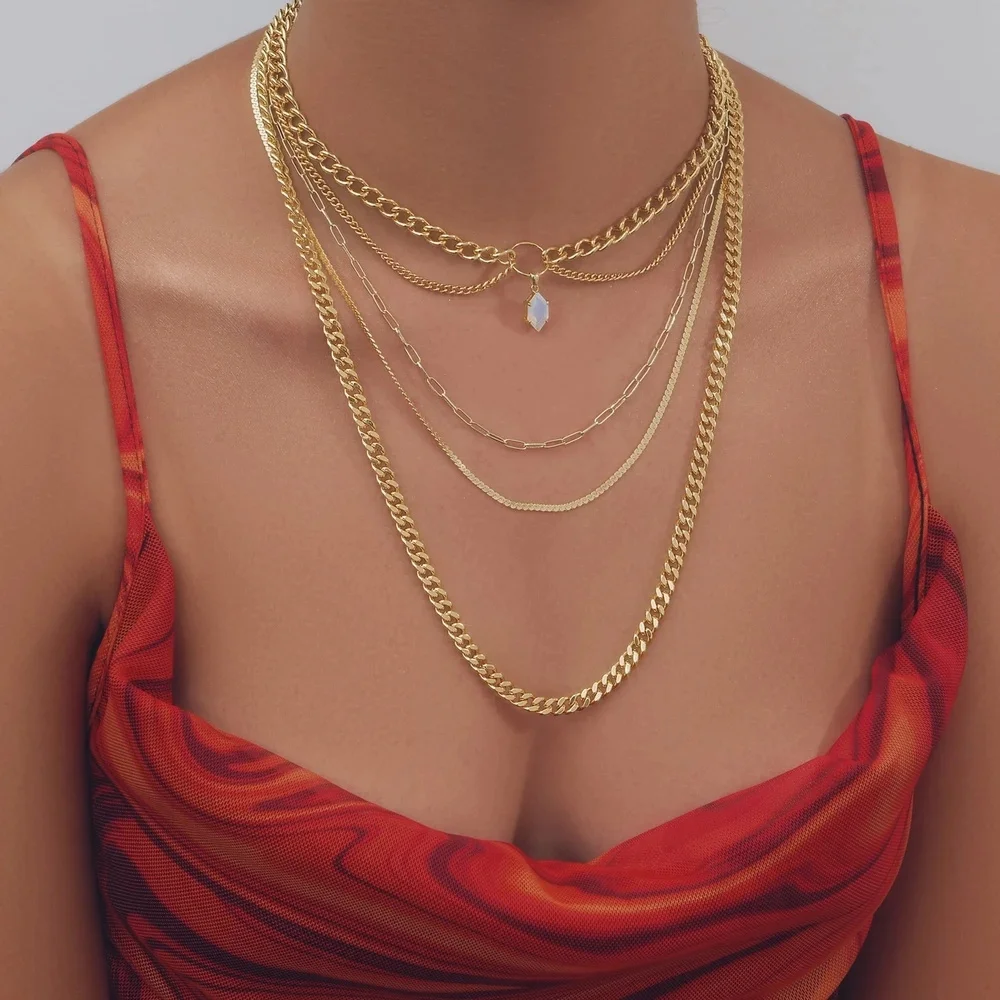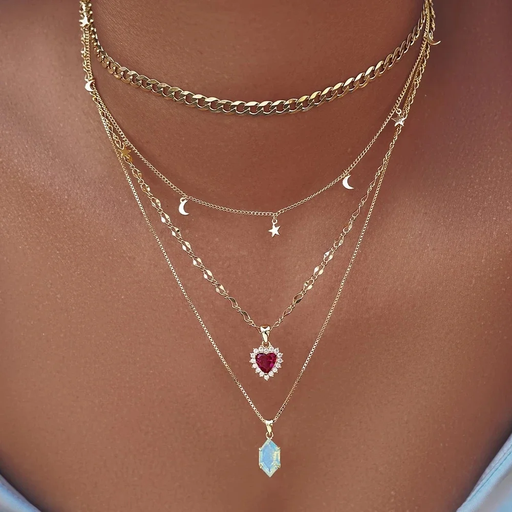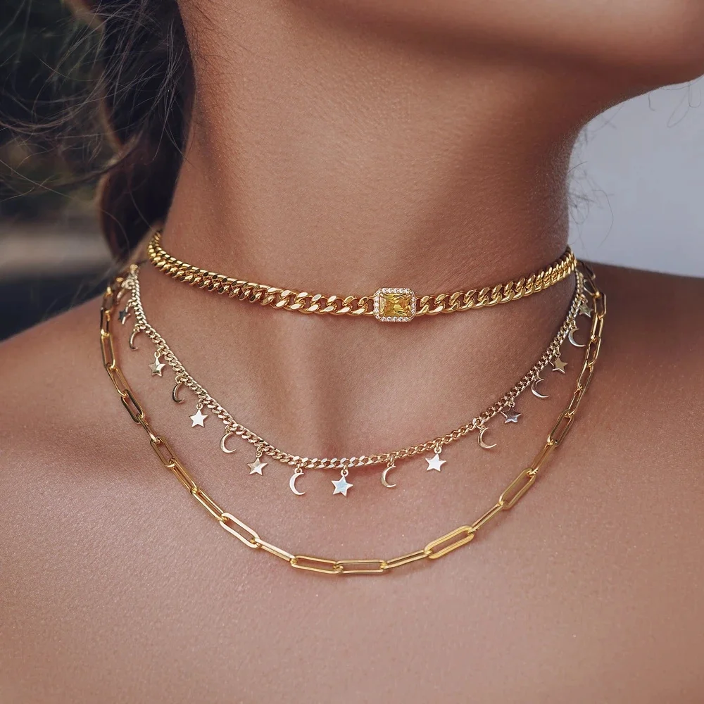 victoria’s vogue Boho Gold Star Butterfly Moon Color Necklace For Women Female Multilevel Vintage Geometric Crystal Pendant Chain Jewelry