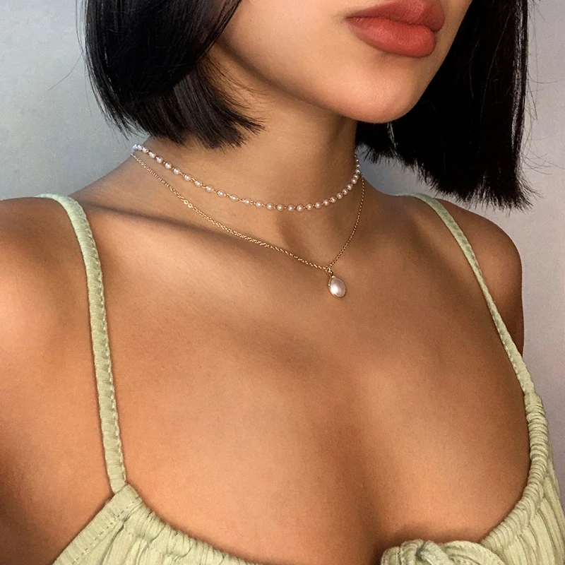 victoria’s vogue Boho Green Stone Necklace For Women Fashion Gold Color Multilayered Beaded Choker Necklaces Party Jewelry