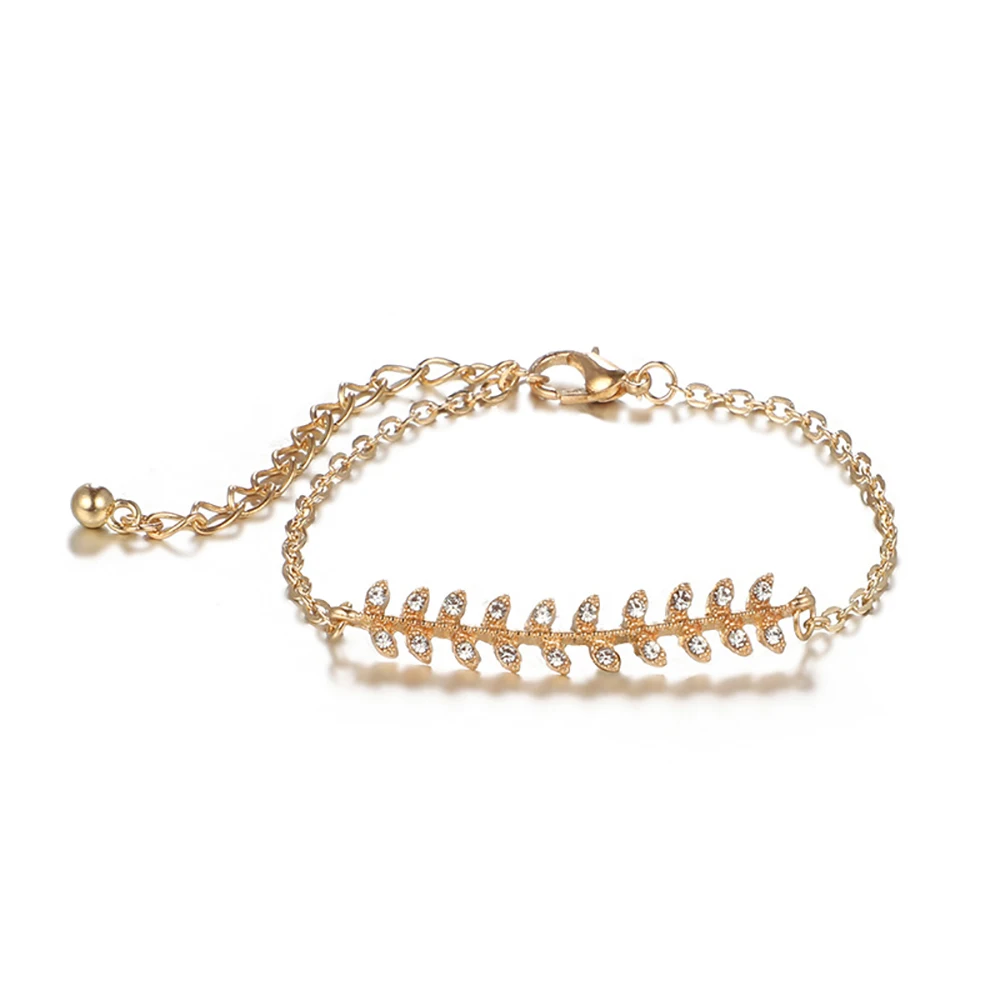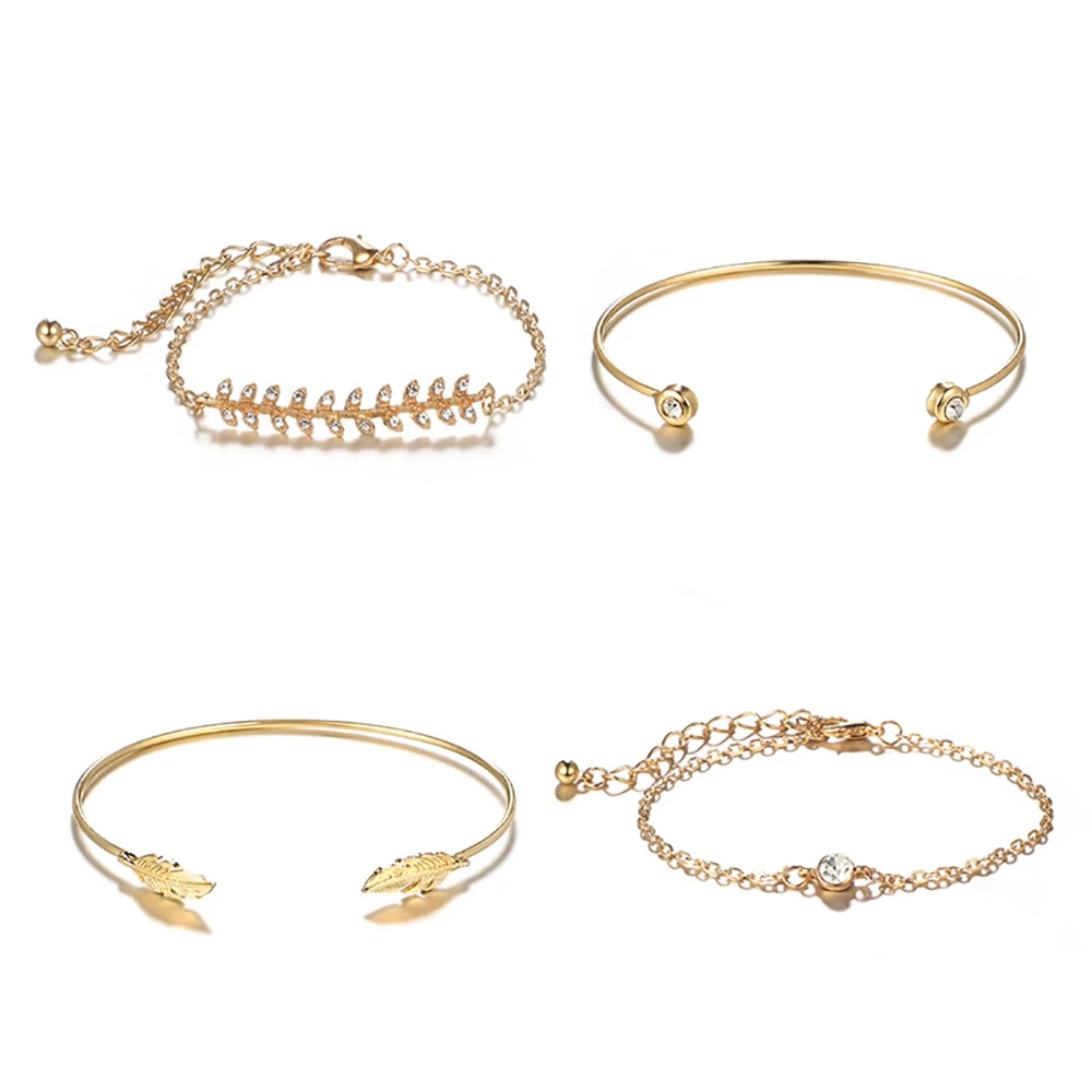 Victoria’s Vogue Boho Metal Gold Bracelets & Bangles For Women Vintage Multi-shape Leaf Crystal Adjustable Bracelet Set Female Fashion Jewelry