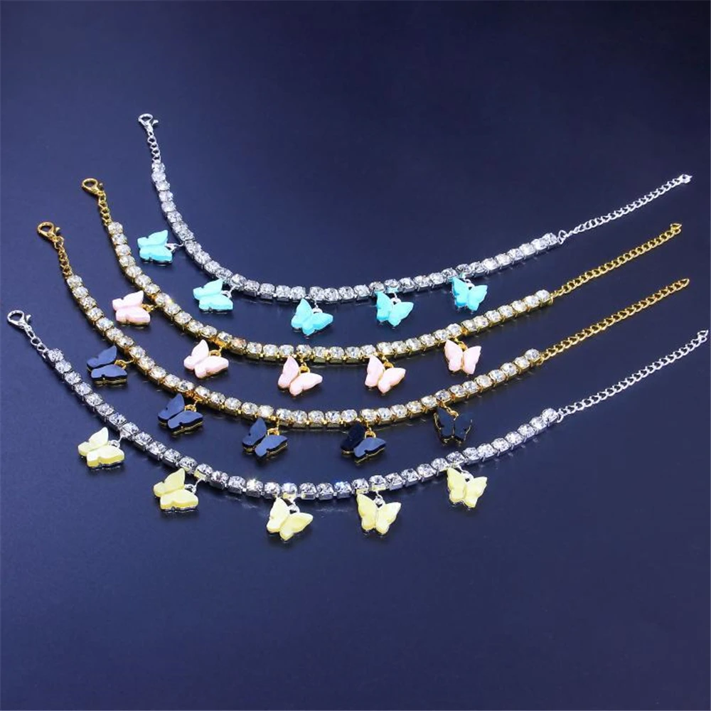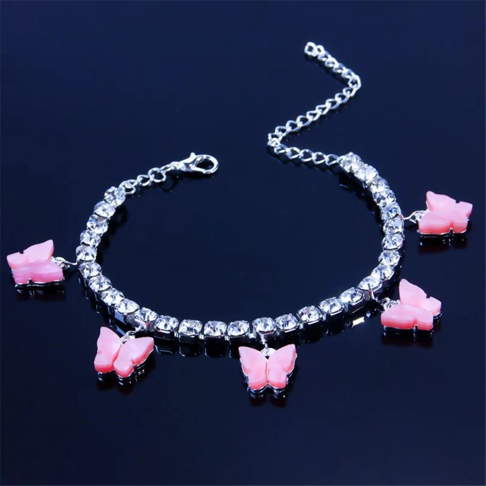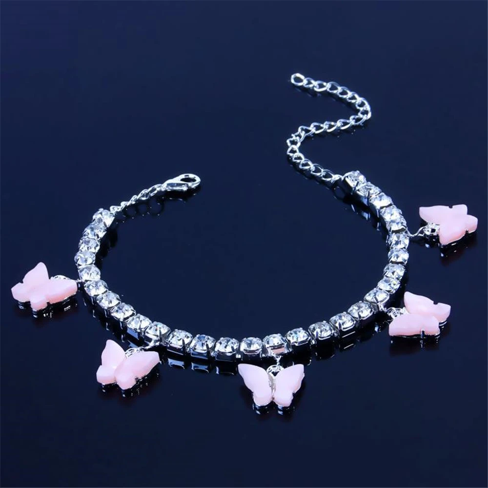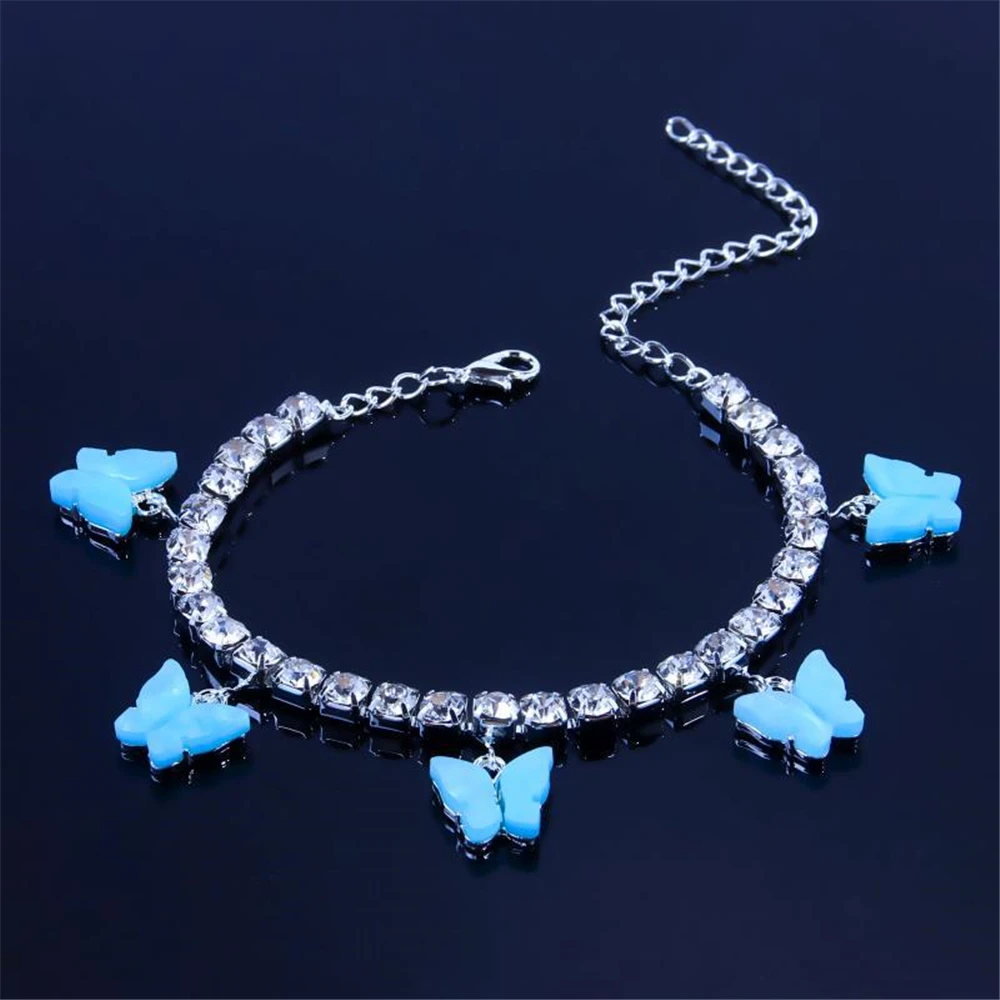 Victoria’s Vogue Boho Simple Bracelet Fashion Bracelets For Women New Vintage Crystal Chain Multi-color Butterfly Pendant Jewelry Party Gift