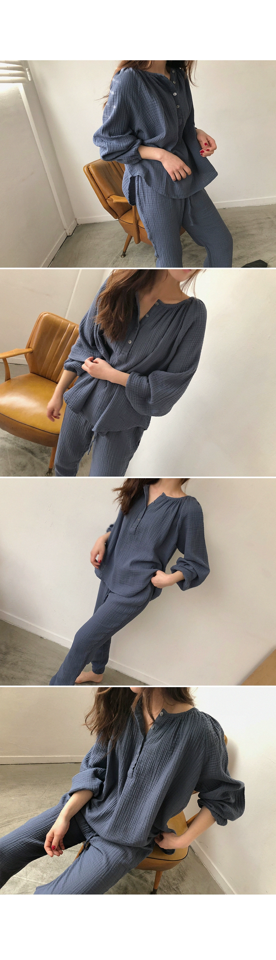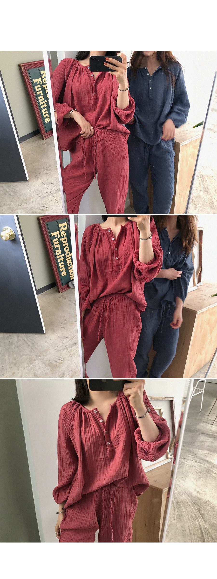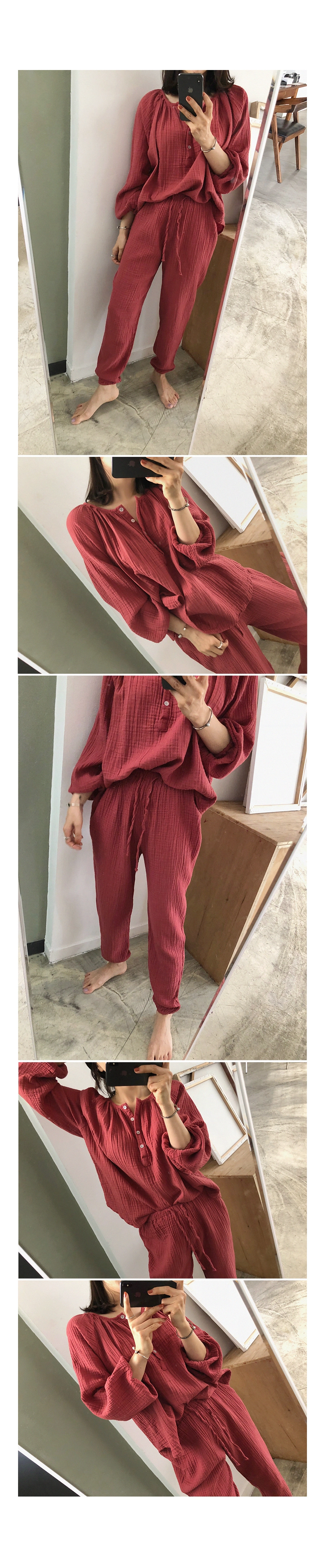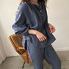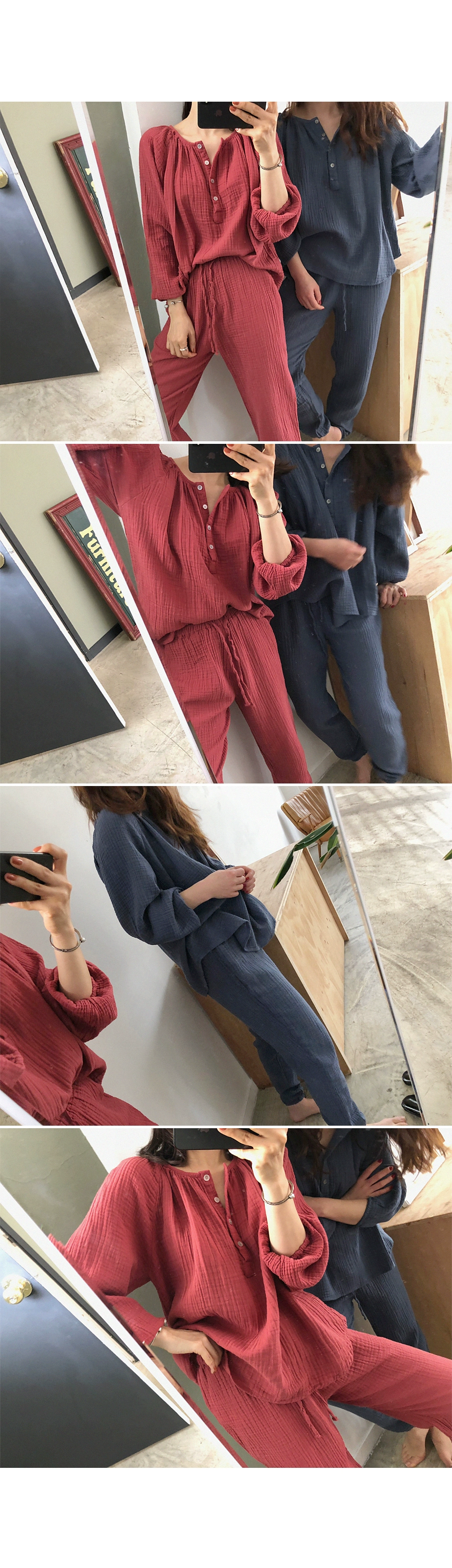 Victoria’s Vogue Breathable spring autumn women red blue pajamas set long sleeve sleepwear contton linen loose sweet drawstring pants sets L261