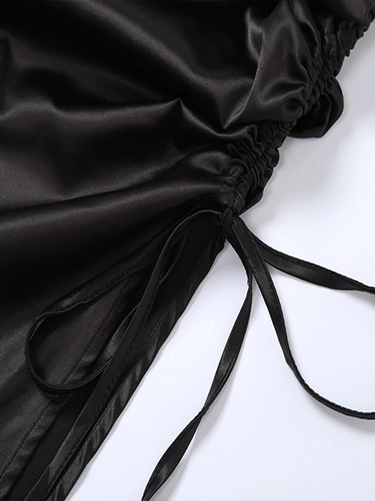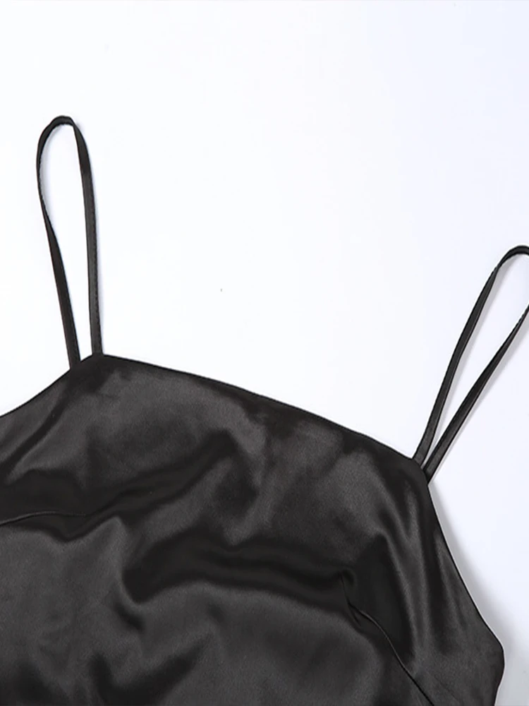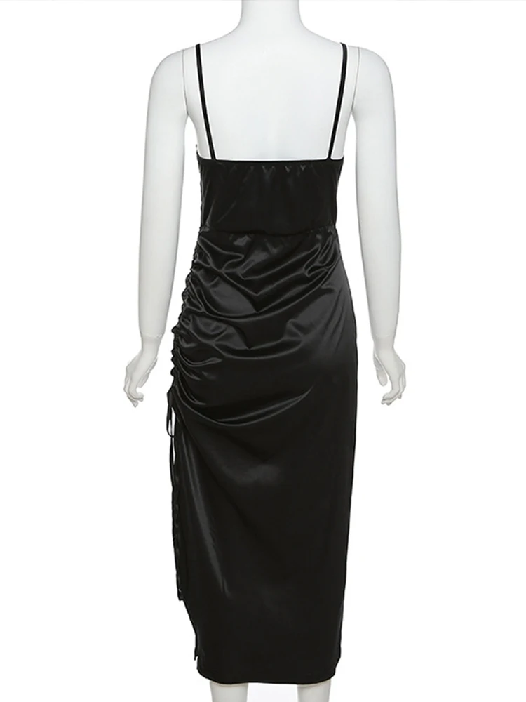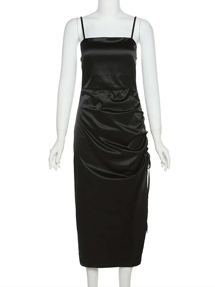victoria’s vogue Cami Midi Dress Women Satin Shirring Side Split Elegant Bodycon Sexy Party Chic Clubwear Dress 2022
