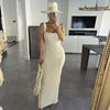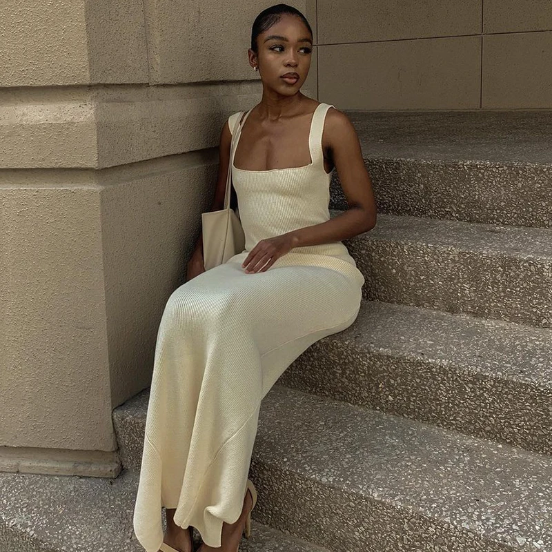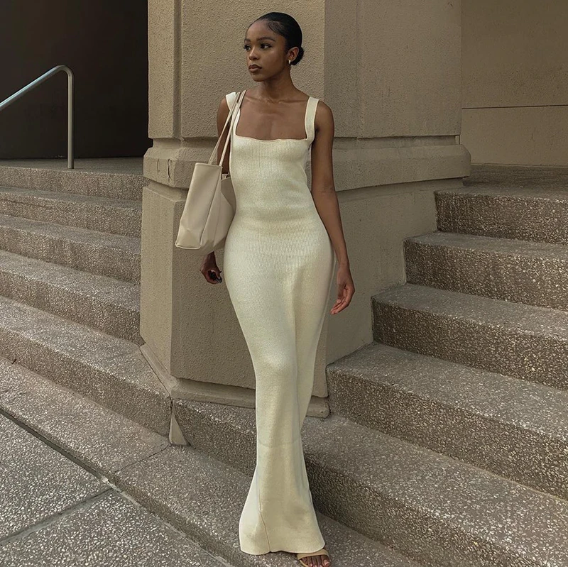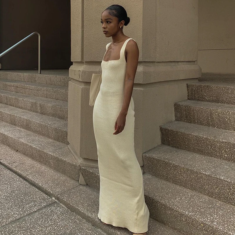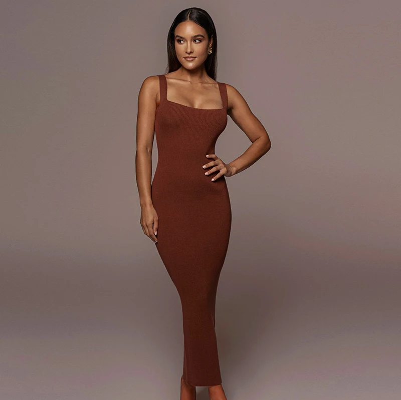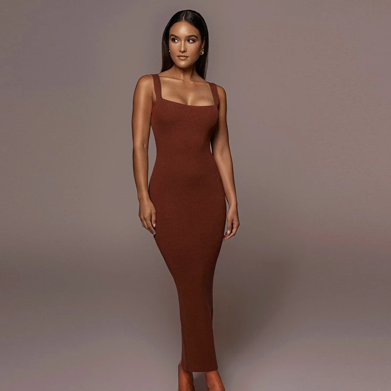 victoria’s vogue Casual Fashion Bodycon Dresses For Women Autumn Solid Square Collar Thread Backless Midi Dress Female Outfit