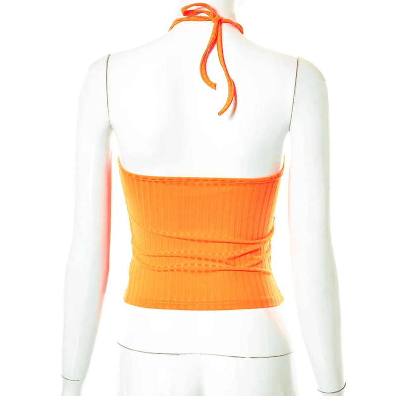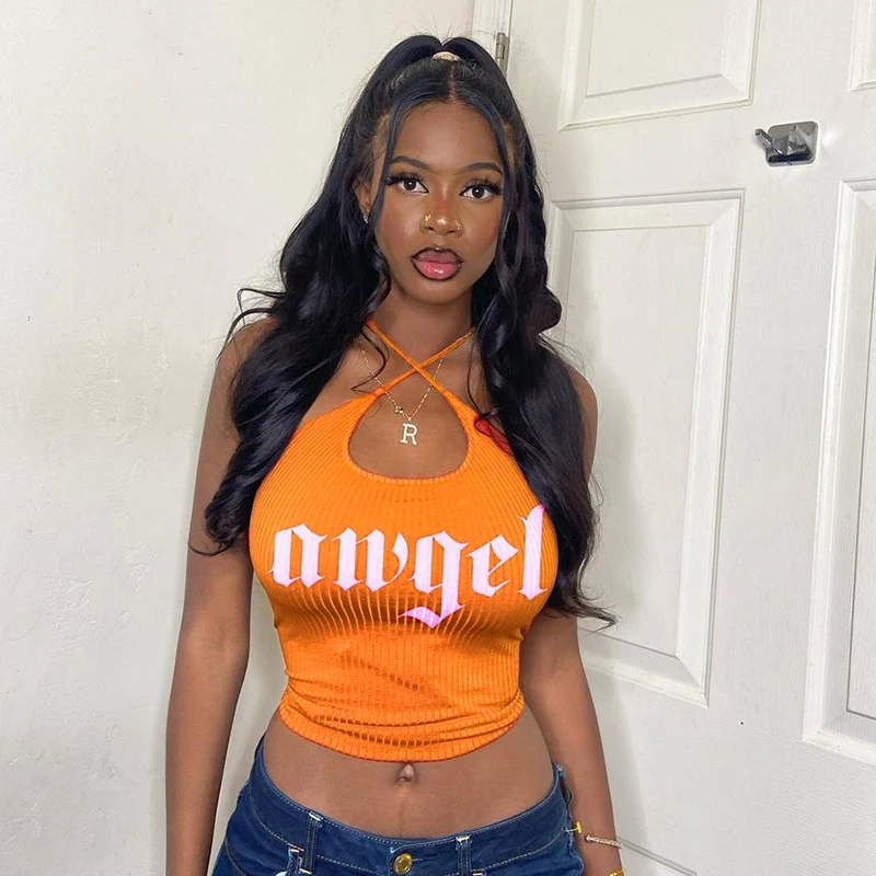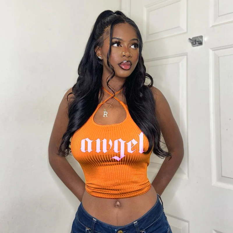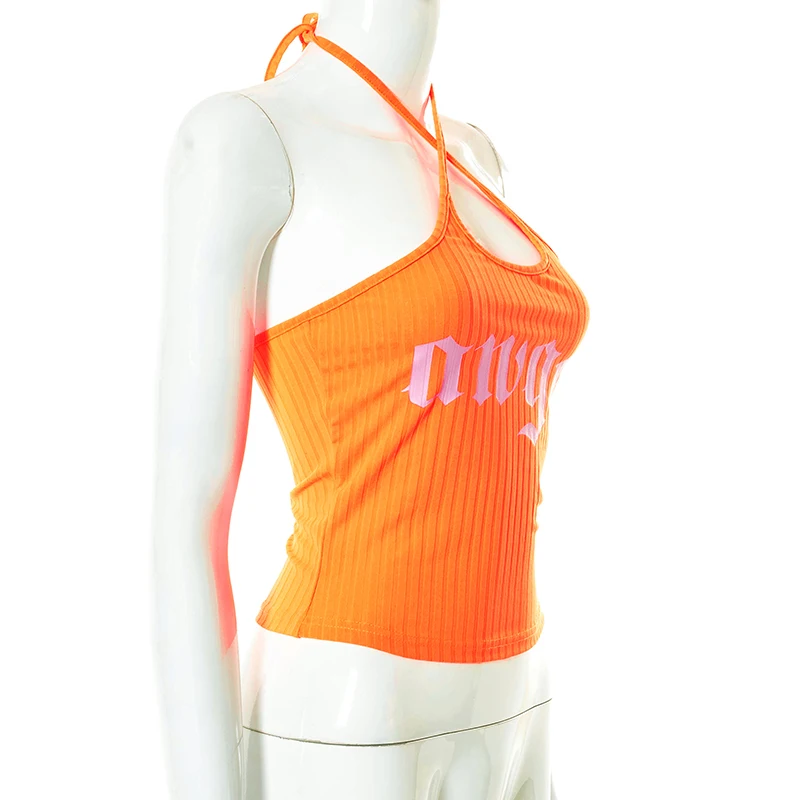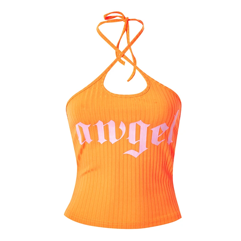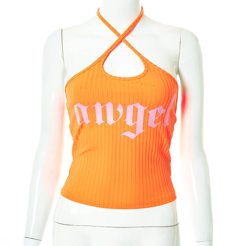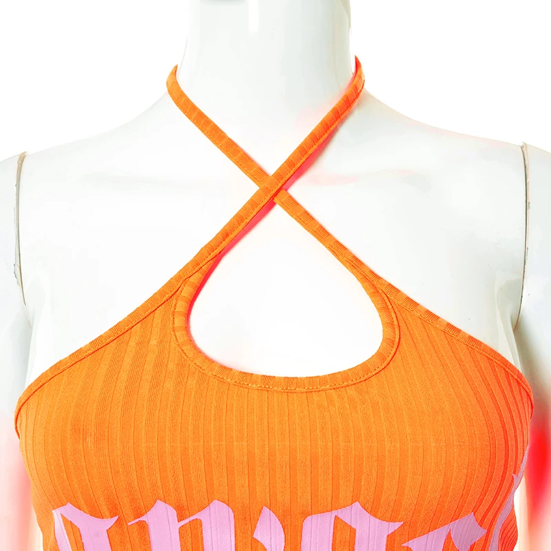 victoria’s vogue Casual Fashion Summer Clothes For Women 2022 Cross Halter Letter Print Lace Up Backless Crop Top Female Streetwears