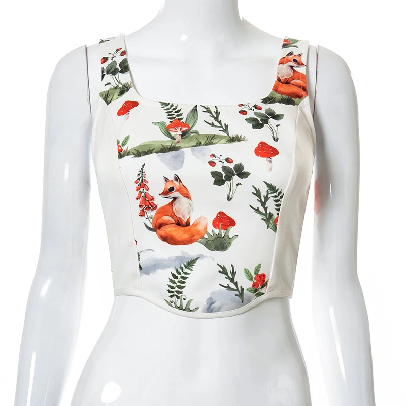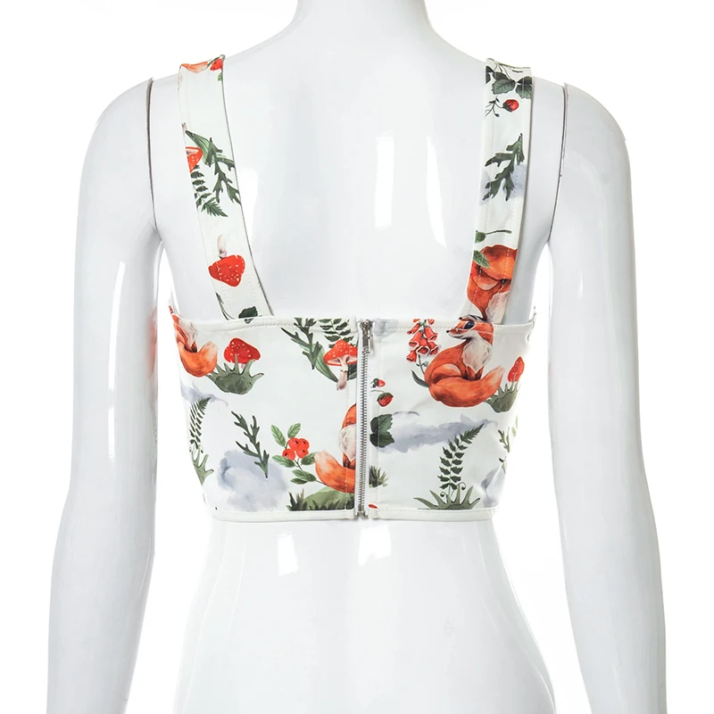 victoria’s vogue Casual Home Clothing Women’s Printed Y2K Camisole Summer 2022 Sleeveless Backless Zipper Female Crop Tops Streetwears