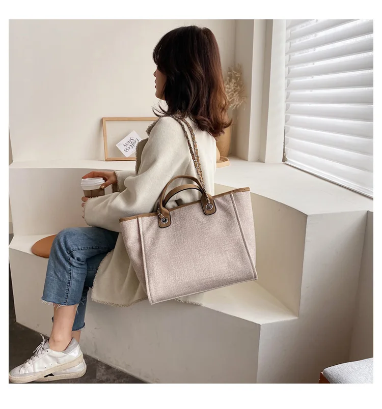 Victoria’s Vogue casual large capacity tote designer chains women handbags luxury canvas lady shoulder mesenger bags female big purses 2020 new