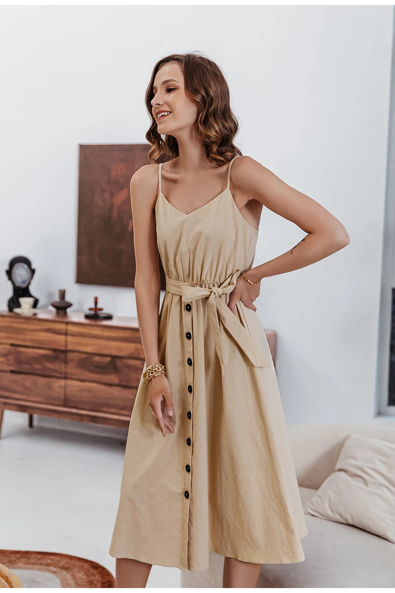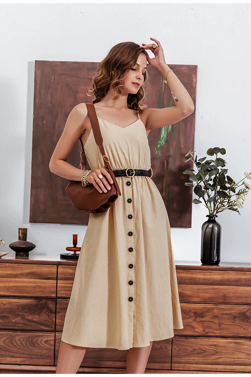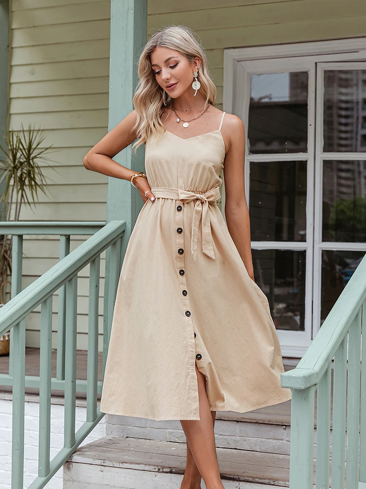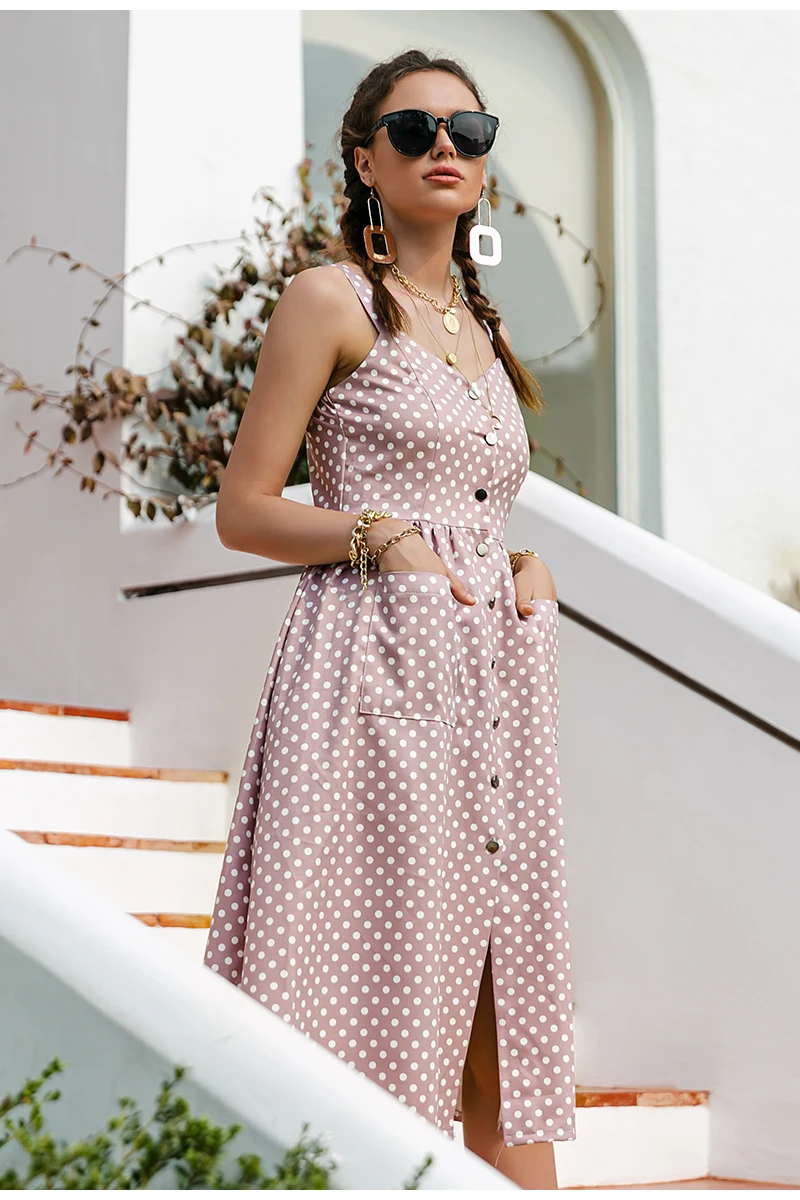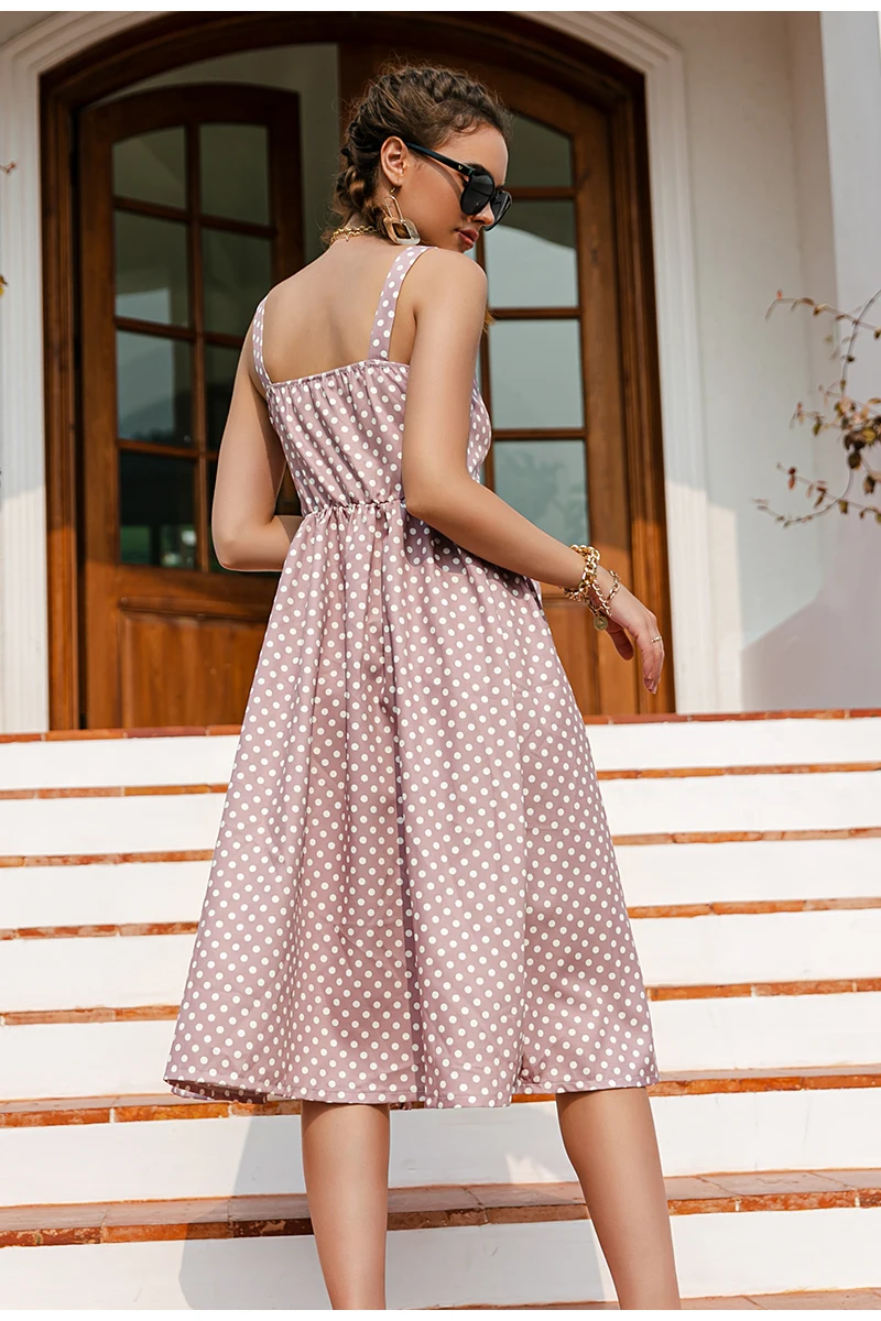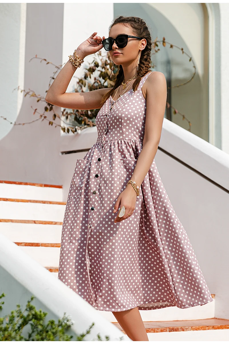 victoria’s vogue Casual Polka Dot Dress Sleeveless Holiday style high waist buttoned women’s Dress Fashion Mid-length summer dresses NEW