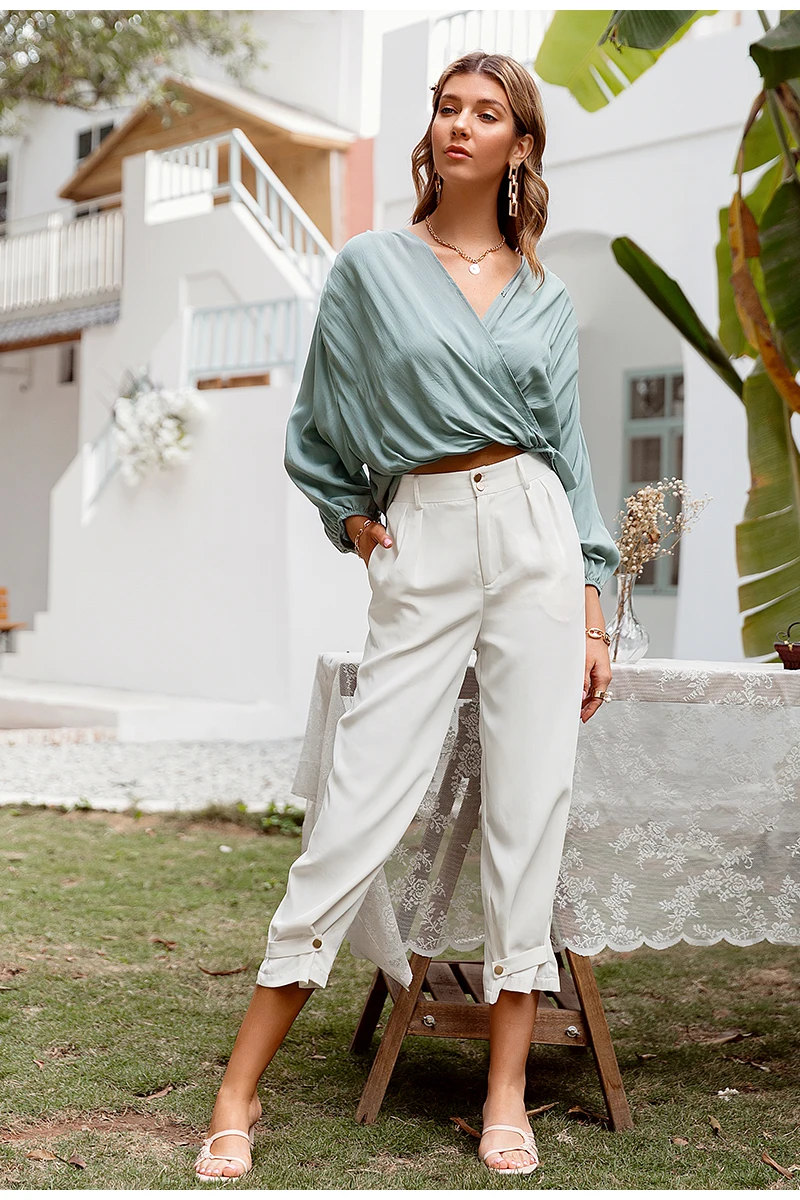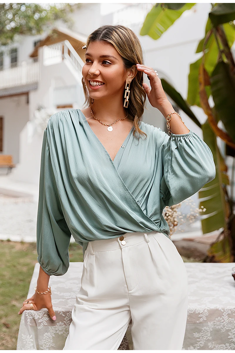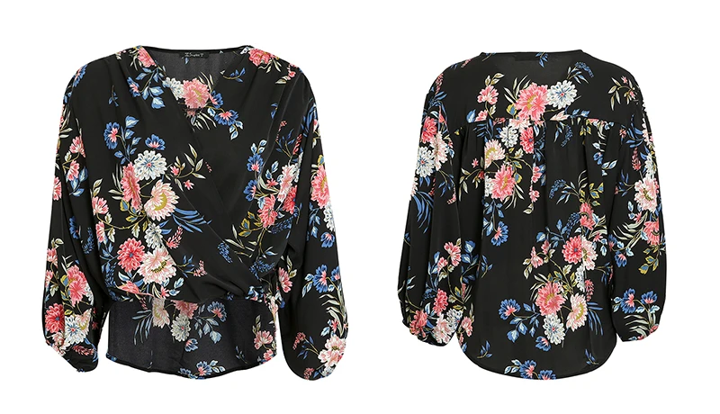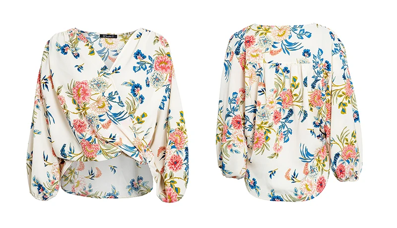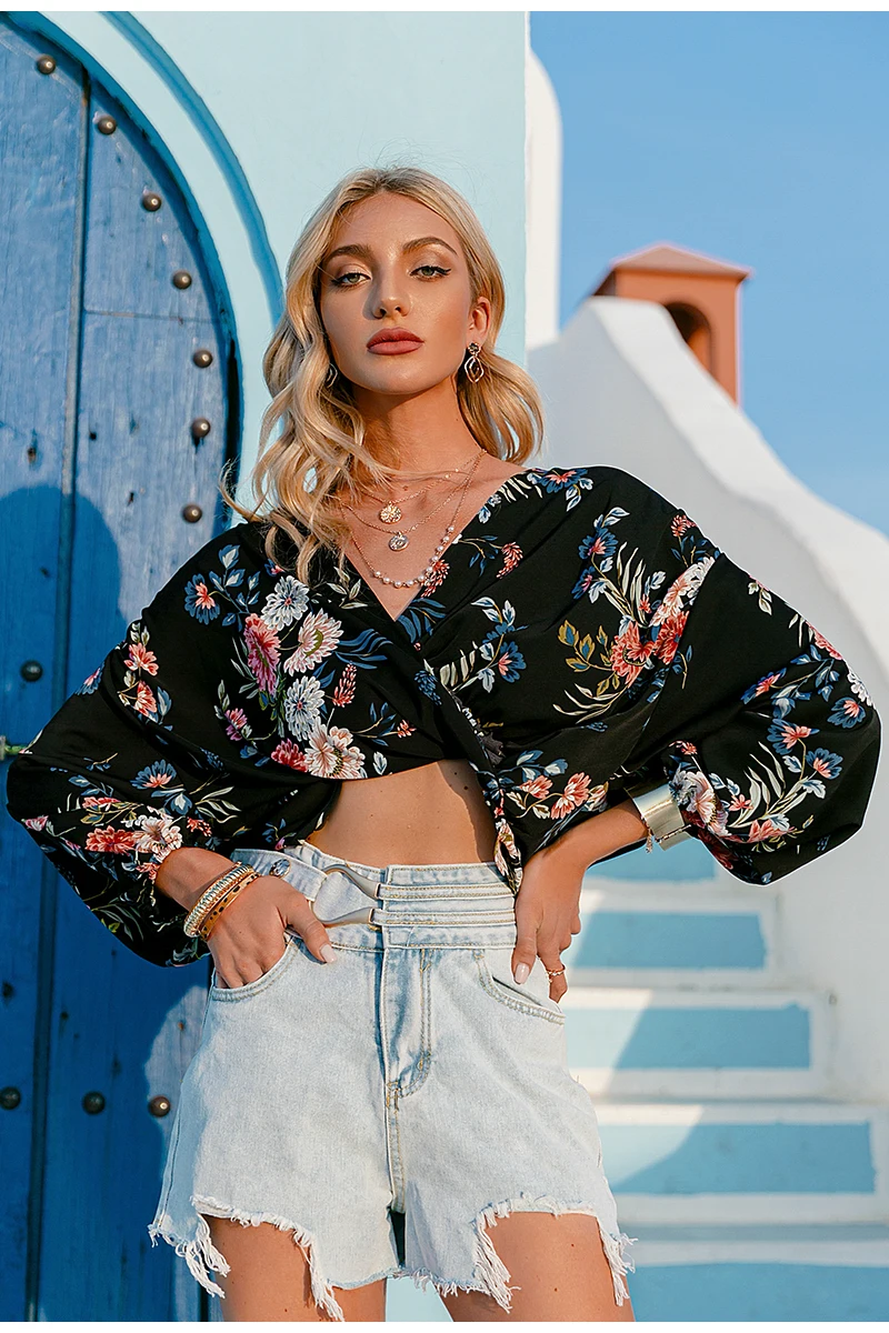 victoria’s vogue Casual printed women blouse Loose Summer puff sleeve V-neck floral top Fashion holiday style mid-sleeve female blouse