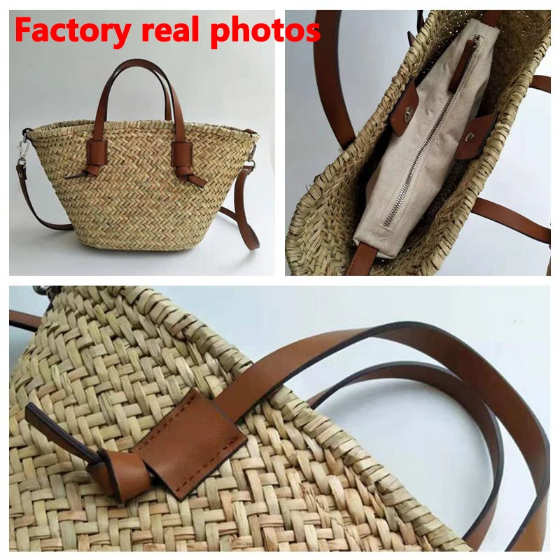 Bohemia Woven Straw Basket Bags for Women Handbag Boho Splice Rattan Shoulder Bags 2021 Women’s Bag Summer Travel Beach Bag Tote