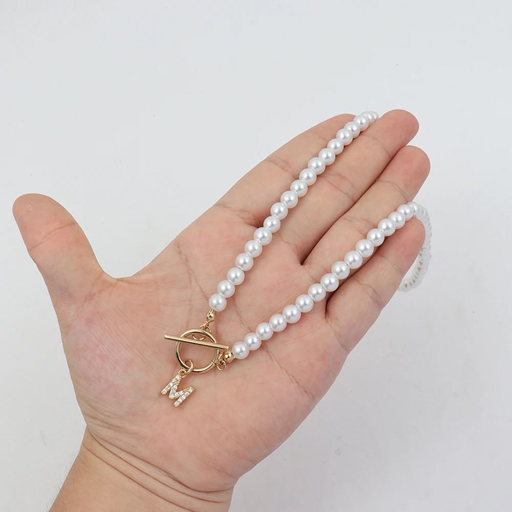 Victoria’s Vogue Classic Hot Initial Necklace Women A-Z Letter Pendant Toggle Clasp 6mm Imitation Pearls Necklace For Women Jewelry Gift