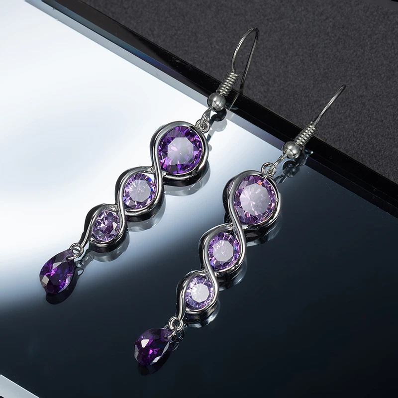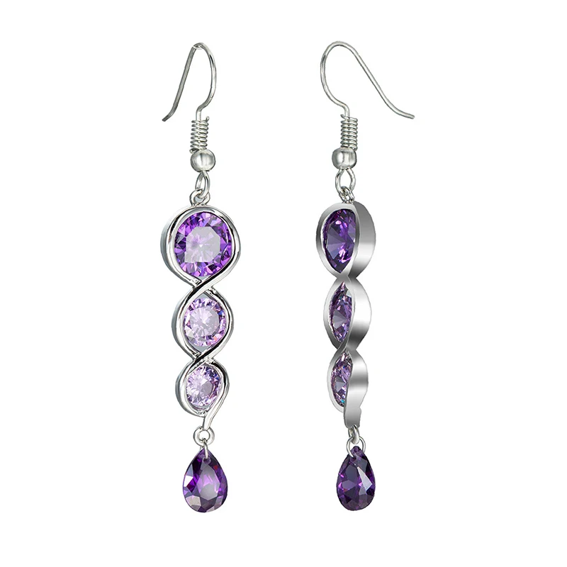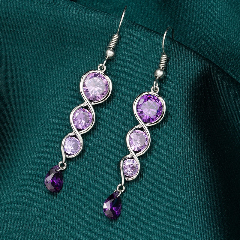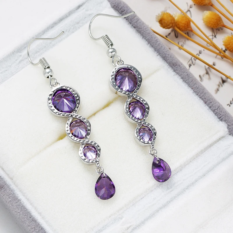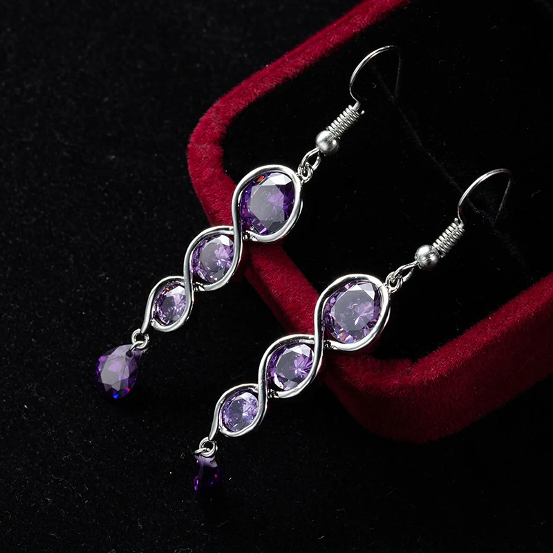 Victoria’s Vogue Classic Twisted Spiral Column Long Drop Earrings For Women Luxury Purple CZ Stone Trendy Wedding Jewelry Female Earring Hook