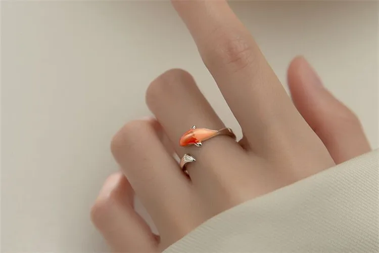 victoria’s vogue Classical Art Auspicious Gradient Fortune Koi 925 Sterling Silver Jewelry Personality Carp Fish Animal Opening Rings