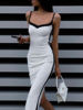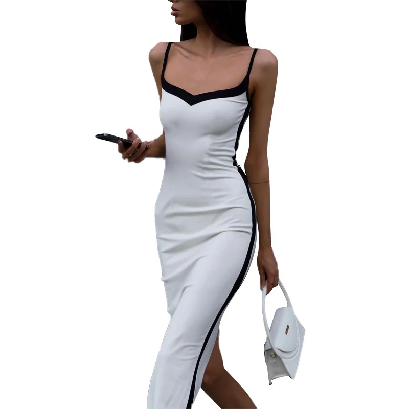 Victoria’s Vogue Color Bloack V Neck Sleeveless Slip Slit Sexy Bodycon Maxi Dress 2024 Fall Women Consice Slim Party Festival Y2K Outfit
