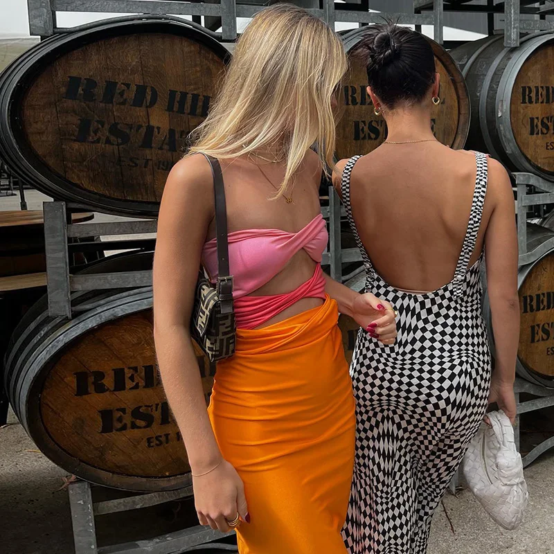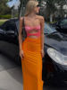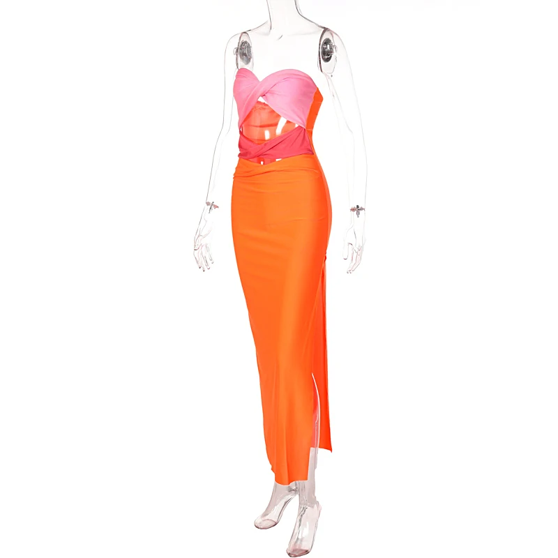 victoria’s vogue Color Block Strapless Hollow Out Pleated Sexy Maxi Dress Bodycon 2022 Summer Women Outfits Beachwear Elegant Party