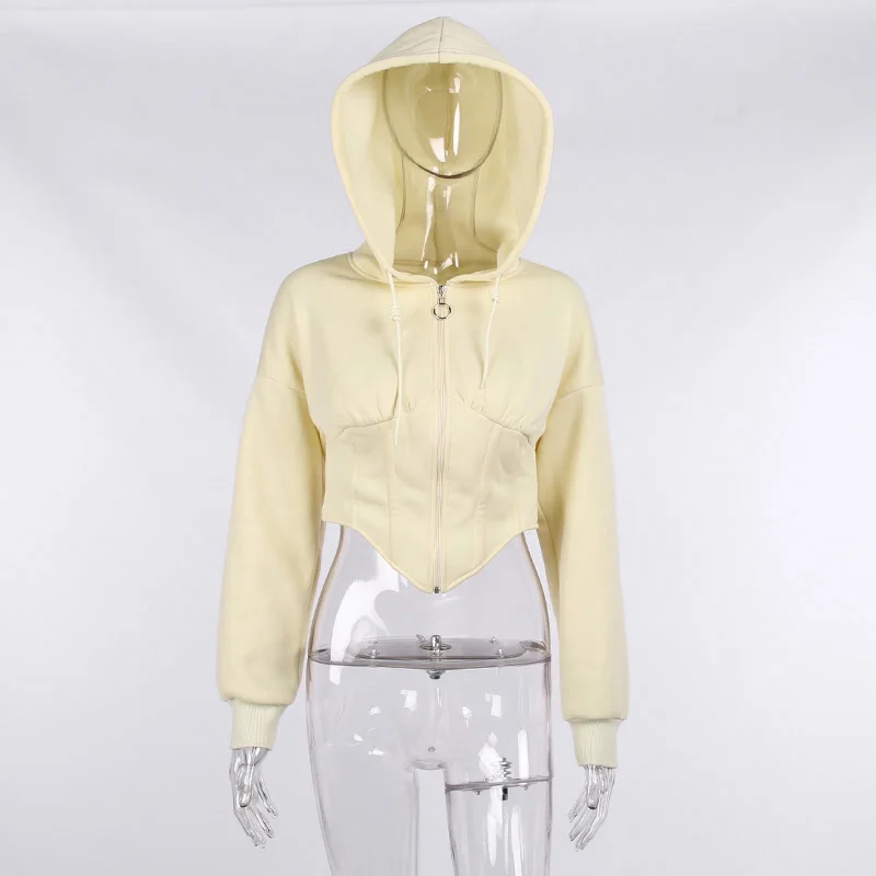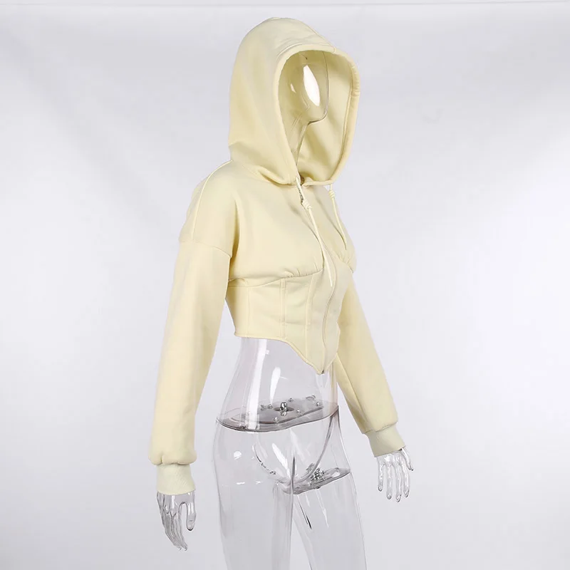 victoria’s vogue Cotton Long Sleeve Women’s Hoodies Skinny Zipper Sweatshirt Stretchy Fashion Autumn Streetwear Casual Solid Corset New