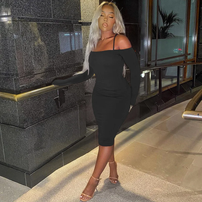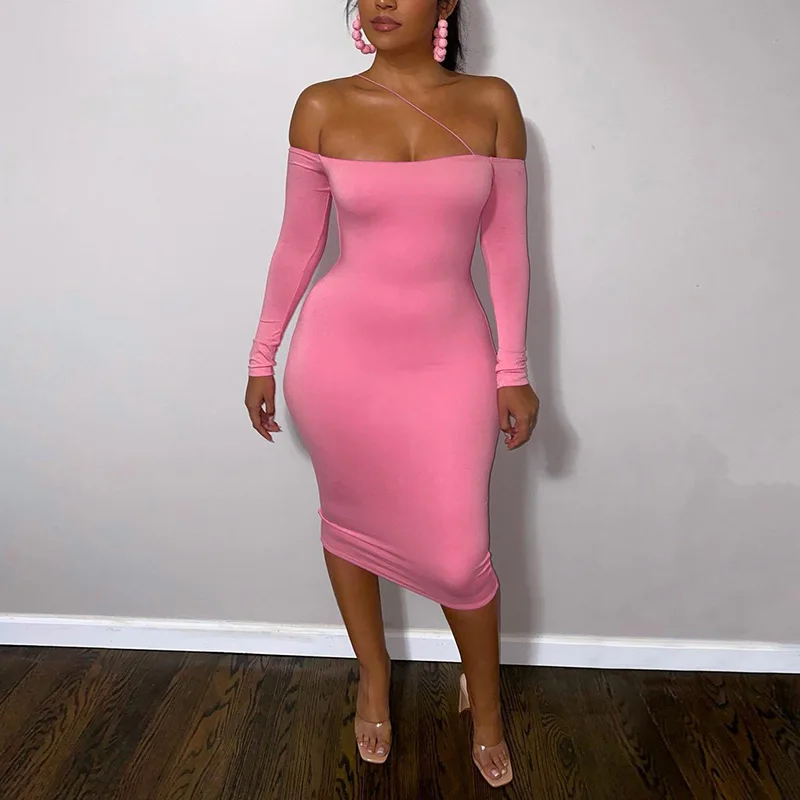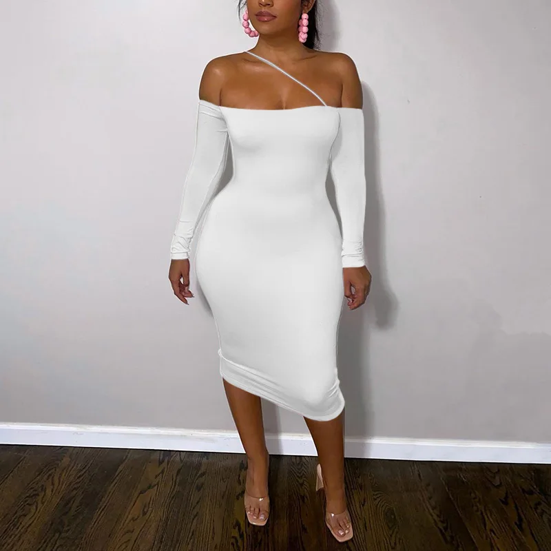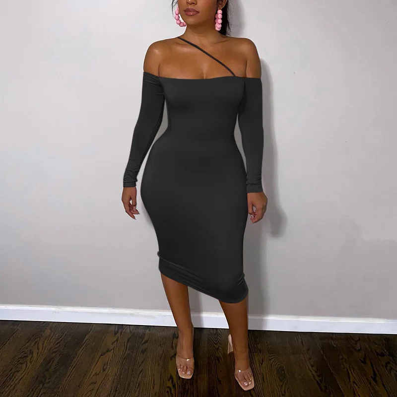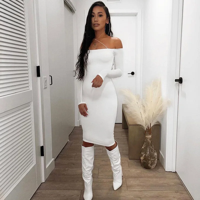 victoria’s vogue Cotton Off Shoulder Midi Woman’s Dresses Long Sleeve Elegant Bodycon Sexy Casual Solid Dresses For Women’s Dress 2021