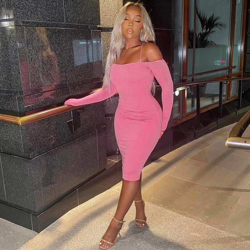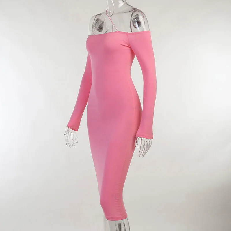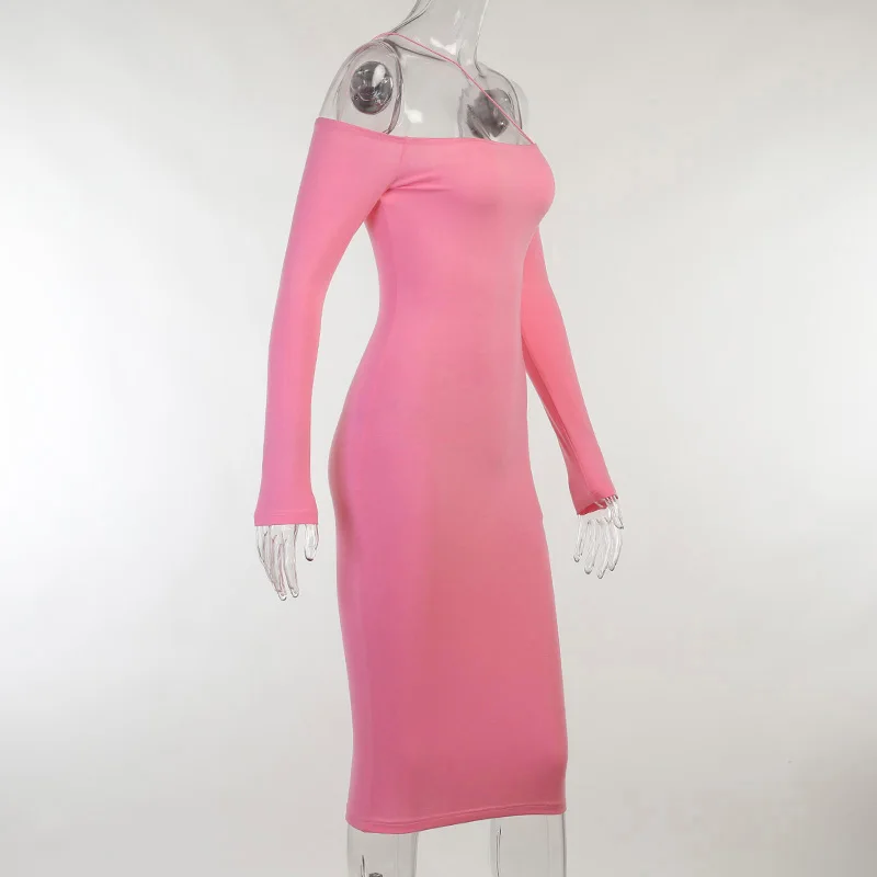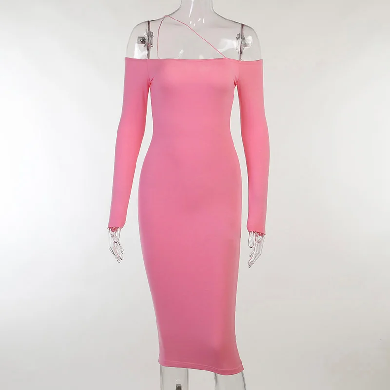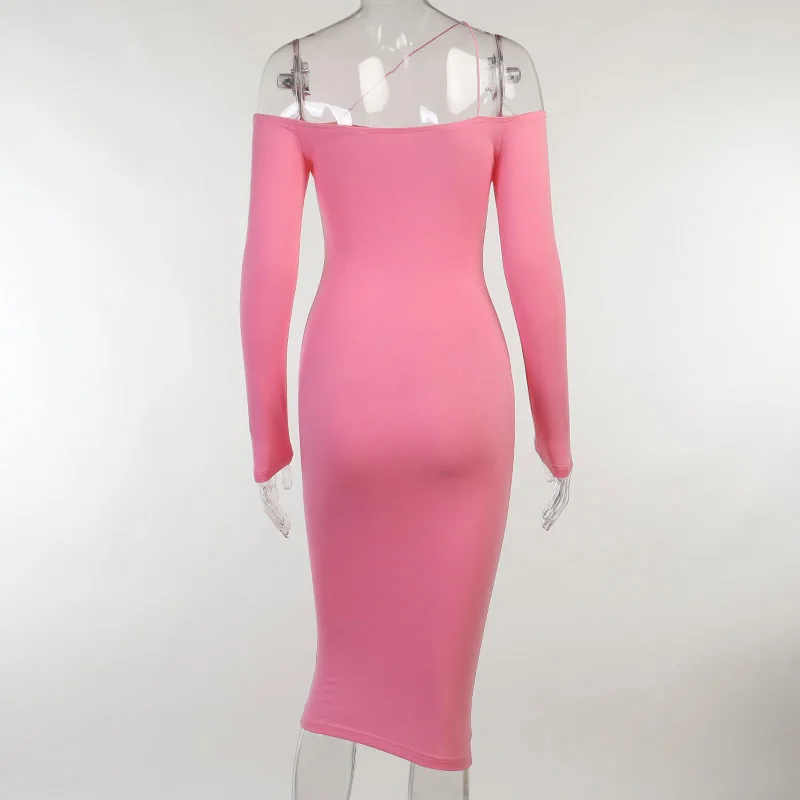 victoria’s vogue Cotton Off Shoulder Midi Woman’s Dresses Long Sleeve Elegant Bodycon Sexy Casual Solid Dresses For Women’s Dress 2021