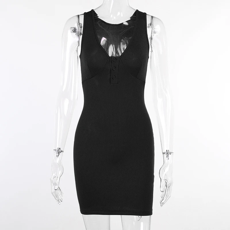 victoria’s vogue Cotton Sleeveless Summer Dresses Women V-Neck Button Mini Sexy Solid Color Basis Party Tank Dress Women Casual New2021