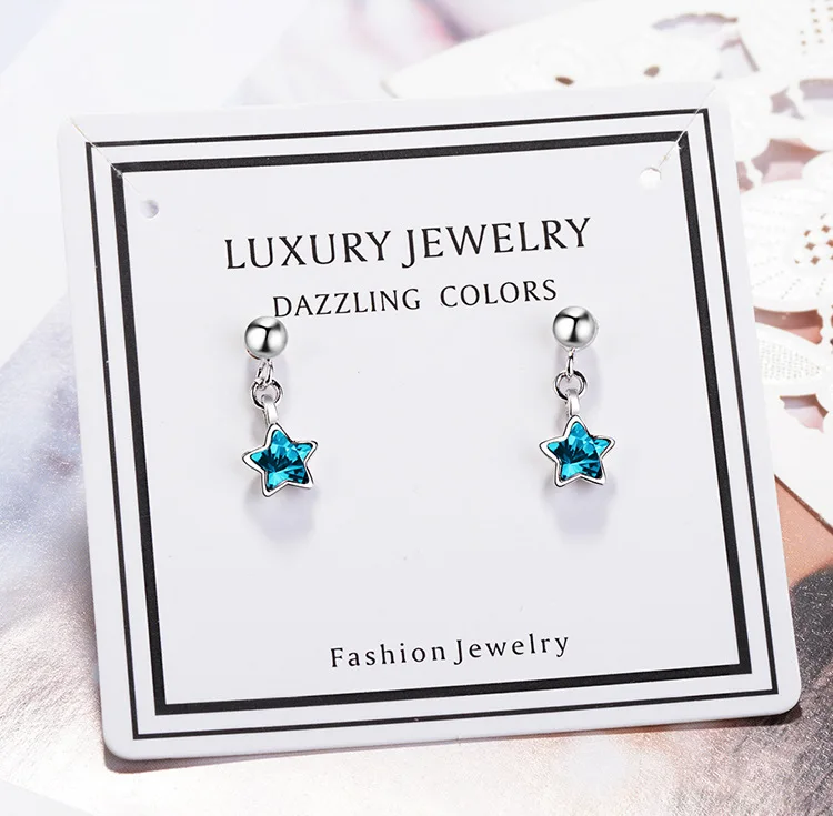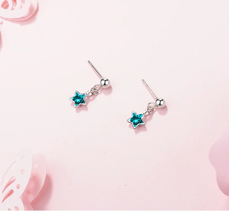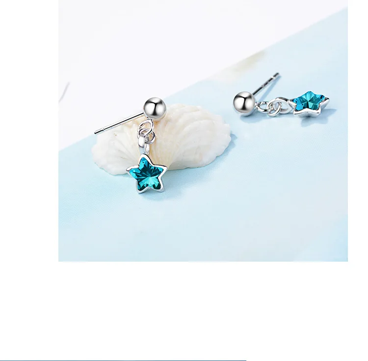 Victoria’s Vogue Creative Azure River Flash 925 Sterling Silver Jewelry Mini Heart Blue Star Temperament Female Exquisite Earrings