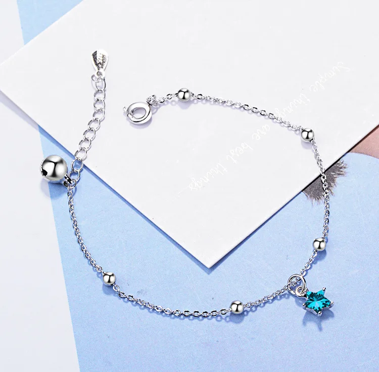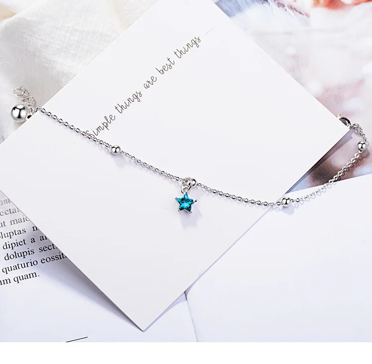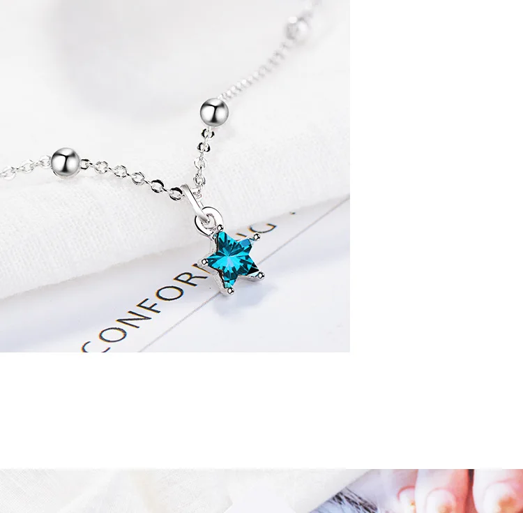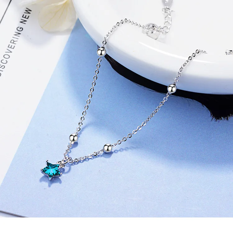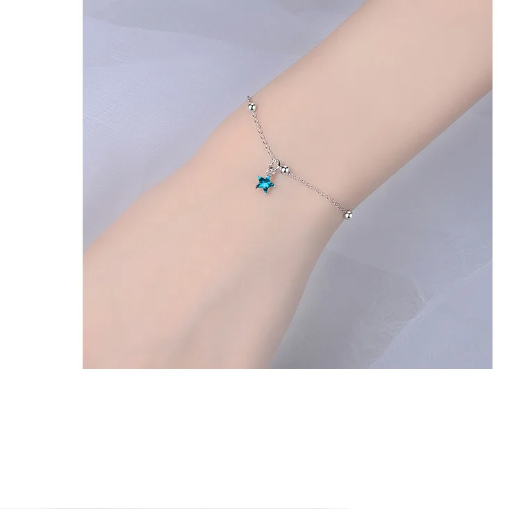 Victoria’s Vogue Creative Fashion Beautiful Exquisite 925 Sterling Silver Jewelry Blue Pentagram Star Simple Crystal Gift Bracelets