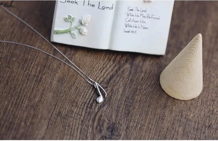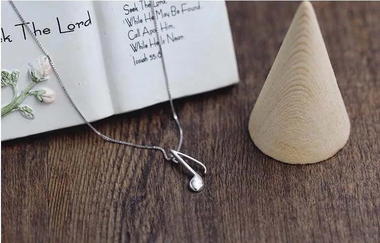 victoria’s vogue Creative Female 925 Sterling Silver Jewelry Fashion Simple Matte Note Cute Pendant Necklace Birthday Gift
