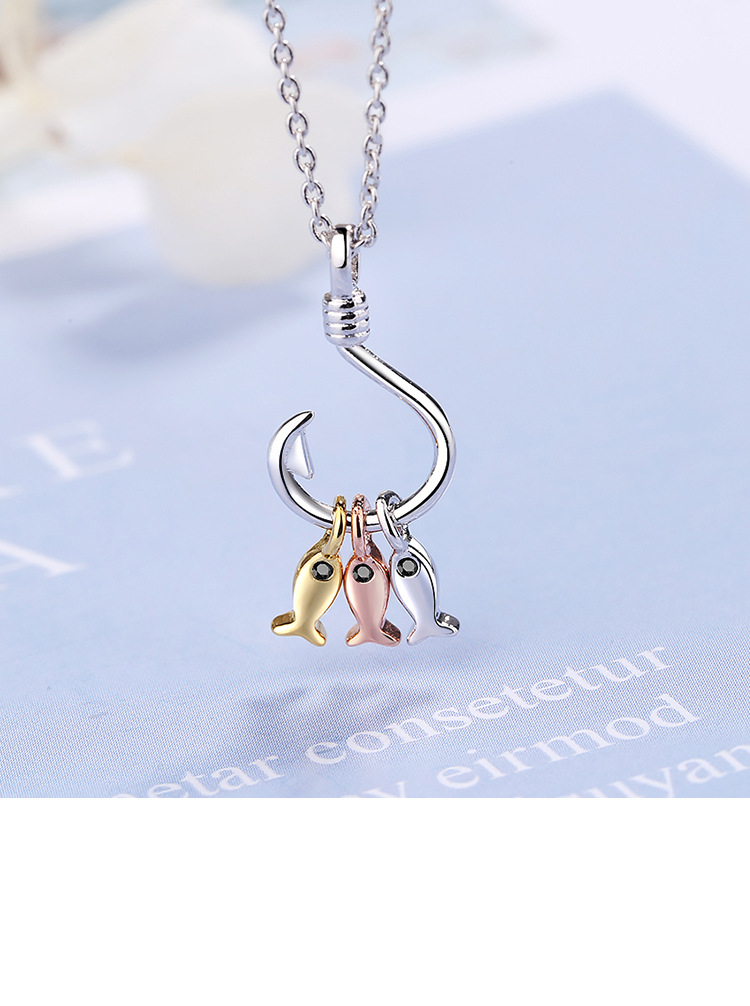 victoria’s vogue Creative Fish Hook Fashion Rose Gold Three Fish 925 Sterling Silver Jewelry Personality Animal Clavicle Chain Necklaces