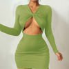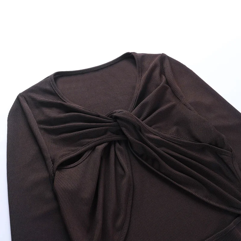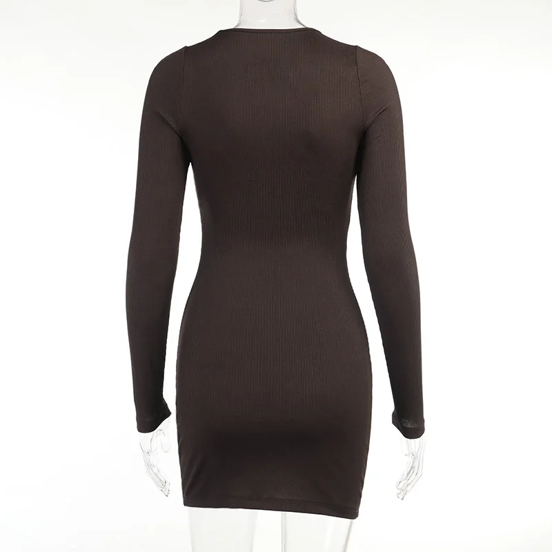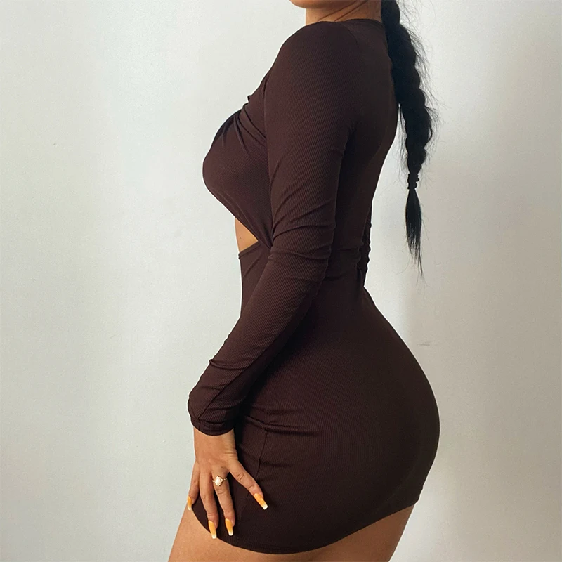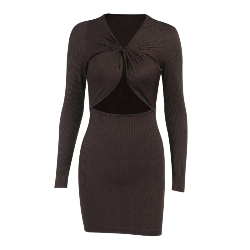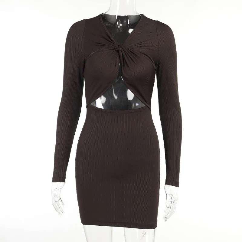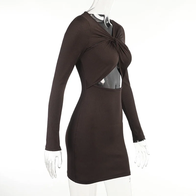 victoria’s vogue Cut Out Long Sleeve Mini Dresses For Women Solid V-Neck Twist Summer Bodycon Sexy Basis Female Streetwear Dress