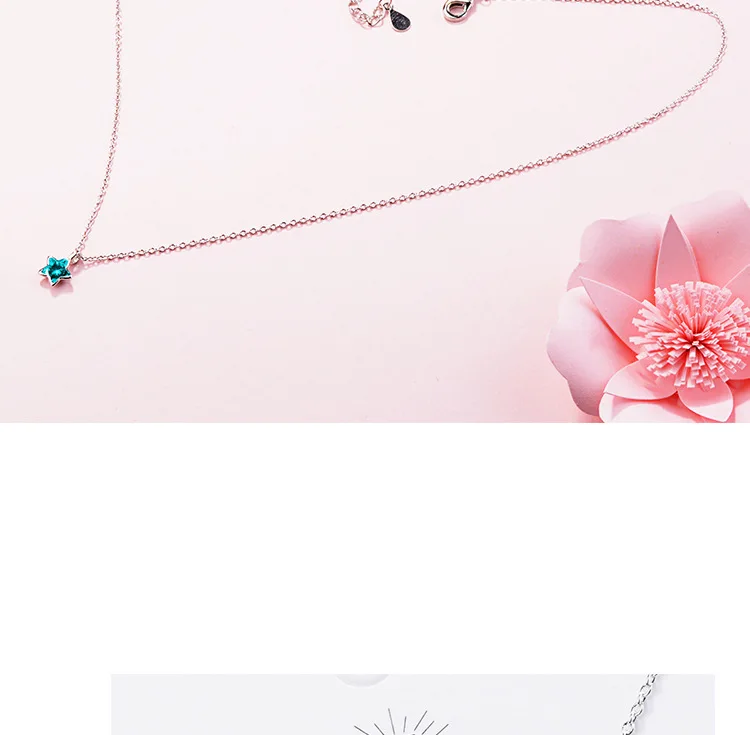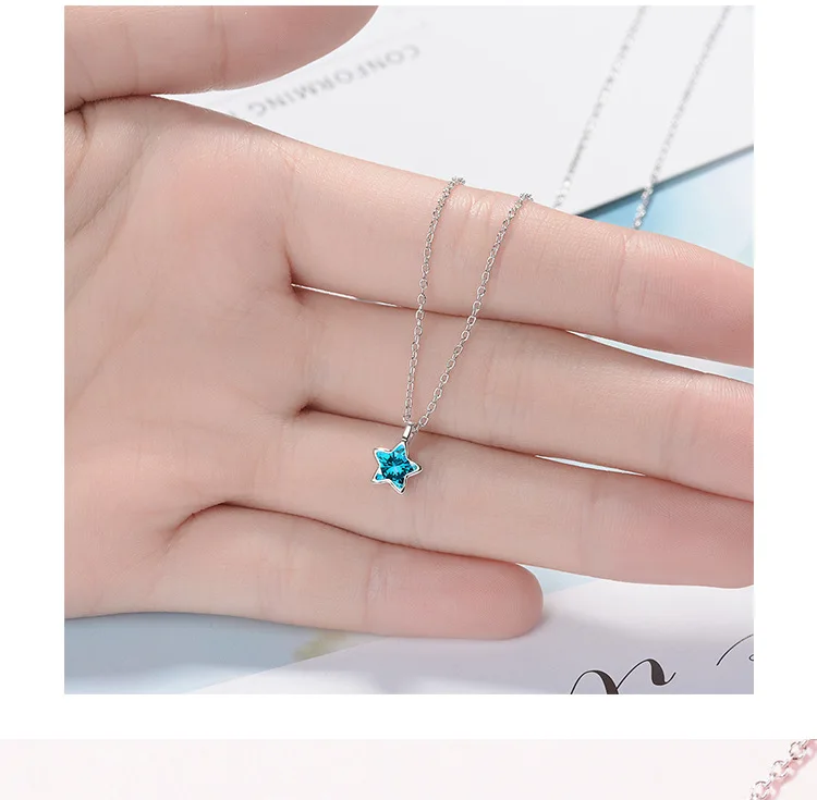 Victoria’s Vogue Cute Five Pointed Star Female Fashion 925 Sterling Silver Jewelry Blue Crystal Simple Star Clavicle Chain Pendant Necklaces