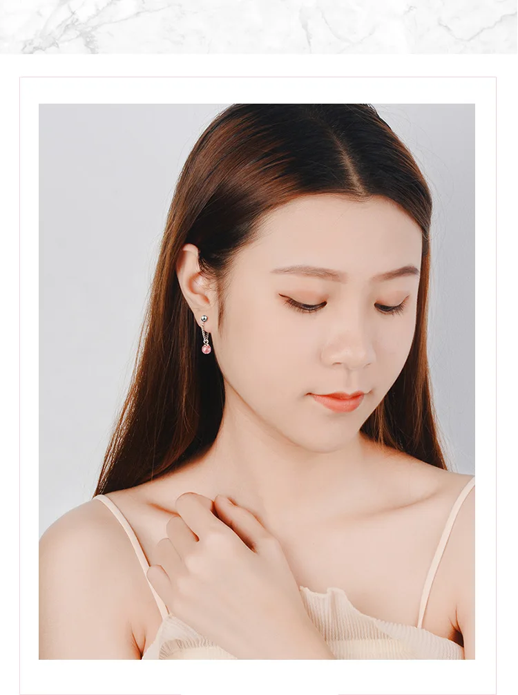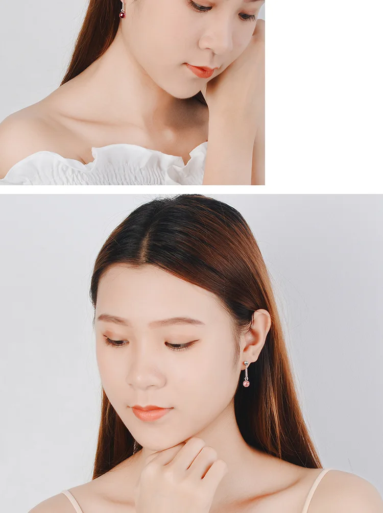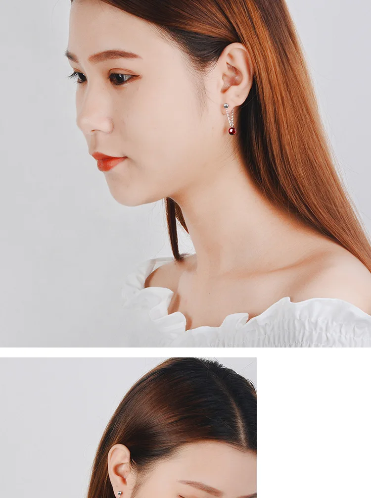 Victoria’s Vogue Cute Girl Wine Red Garnet Ball Beautiful 925 Sterling Silver Jewelry Fashion Women Crystal Geometric Dangle Earrings