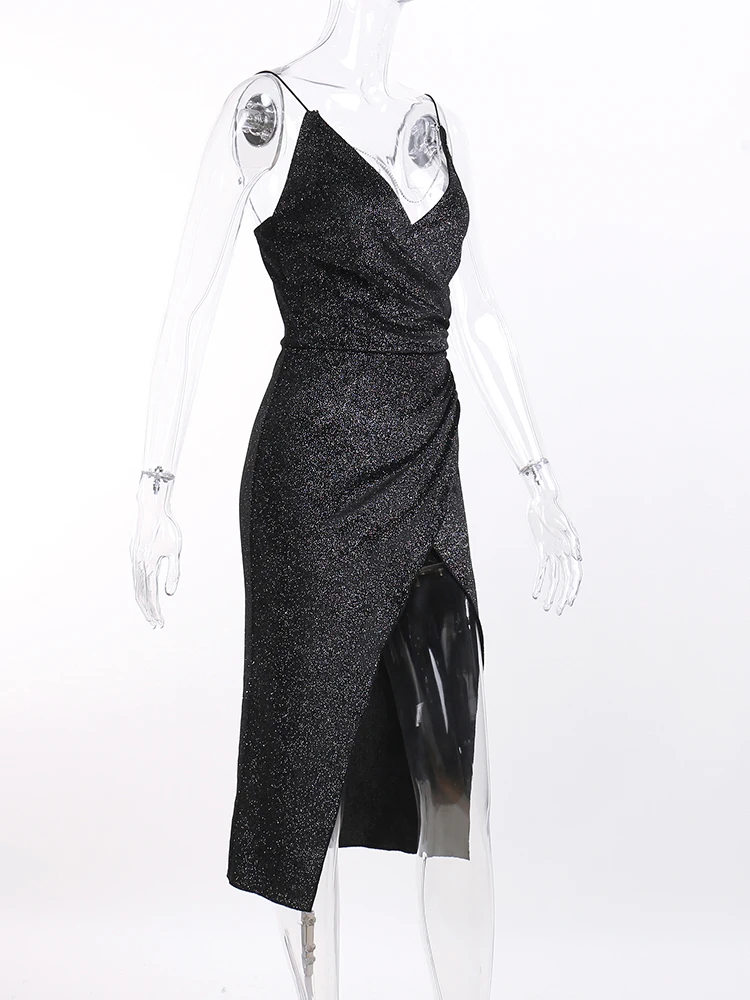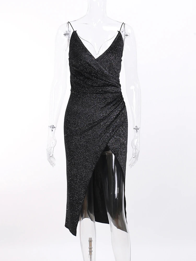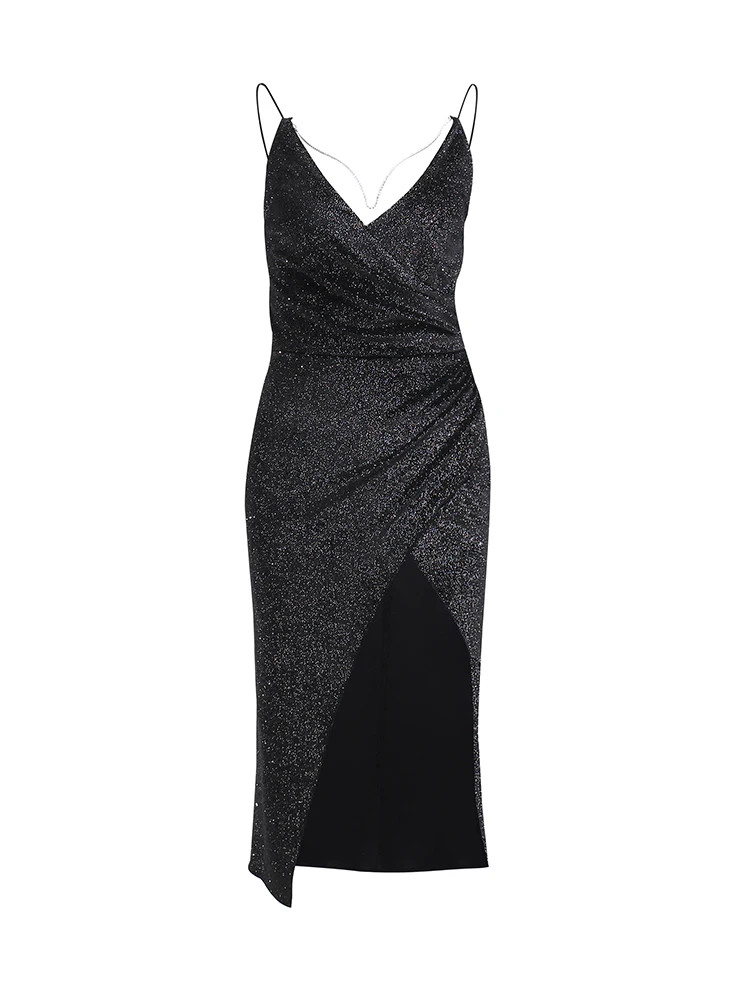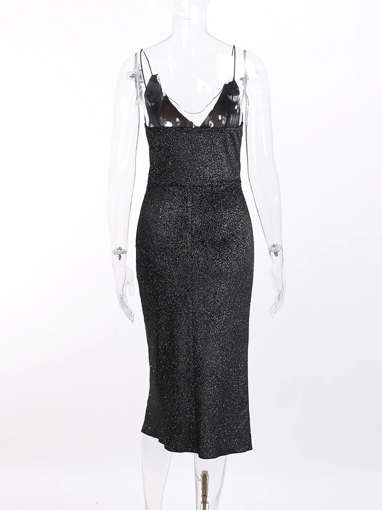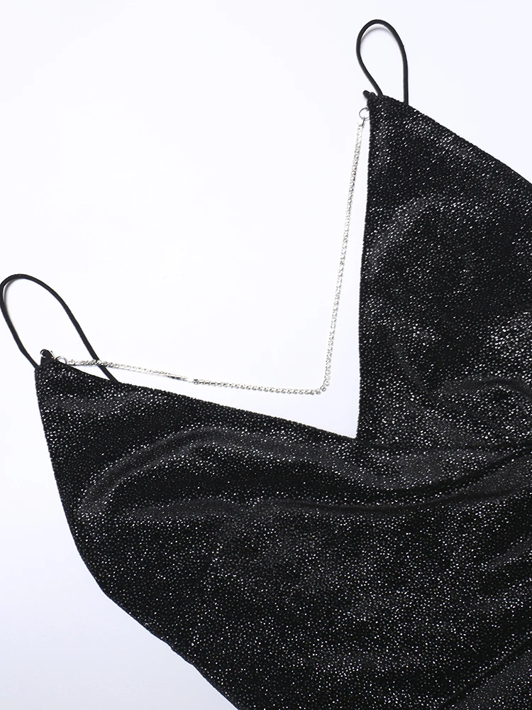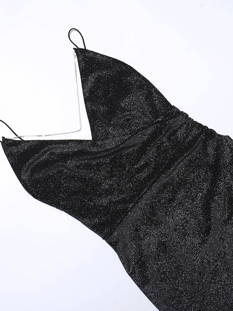 victoria’s vogue Deep V Neck Midi Dress Y2K Sequin Y2K Chain Folds Cami Women Sexy Sleeveless Bodycon Elegant Clubwear Chain Dresses