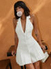 Victoria’s Vogue Deep V Neck Sleeveless Sexy Mini Dress For Women Fashion Single-breasted Backless Bodycon Club Party Dress New