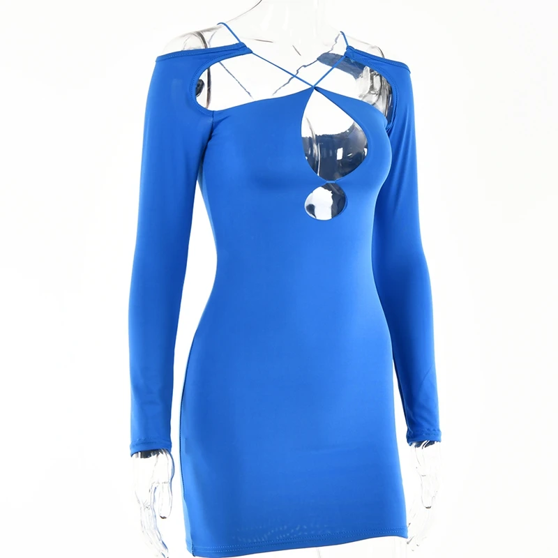 victoria’s vogue Double Layer Slim Women Dress Long Sleeve Sexy Bodycon Low-Cut Ladies Dresses Hollow Out Backless Women Clothing