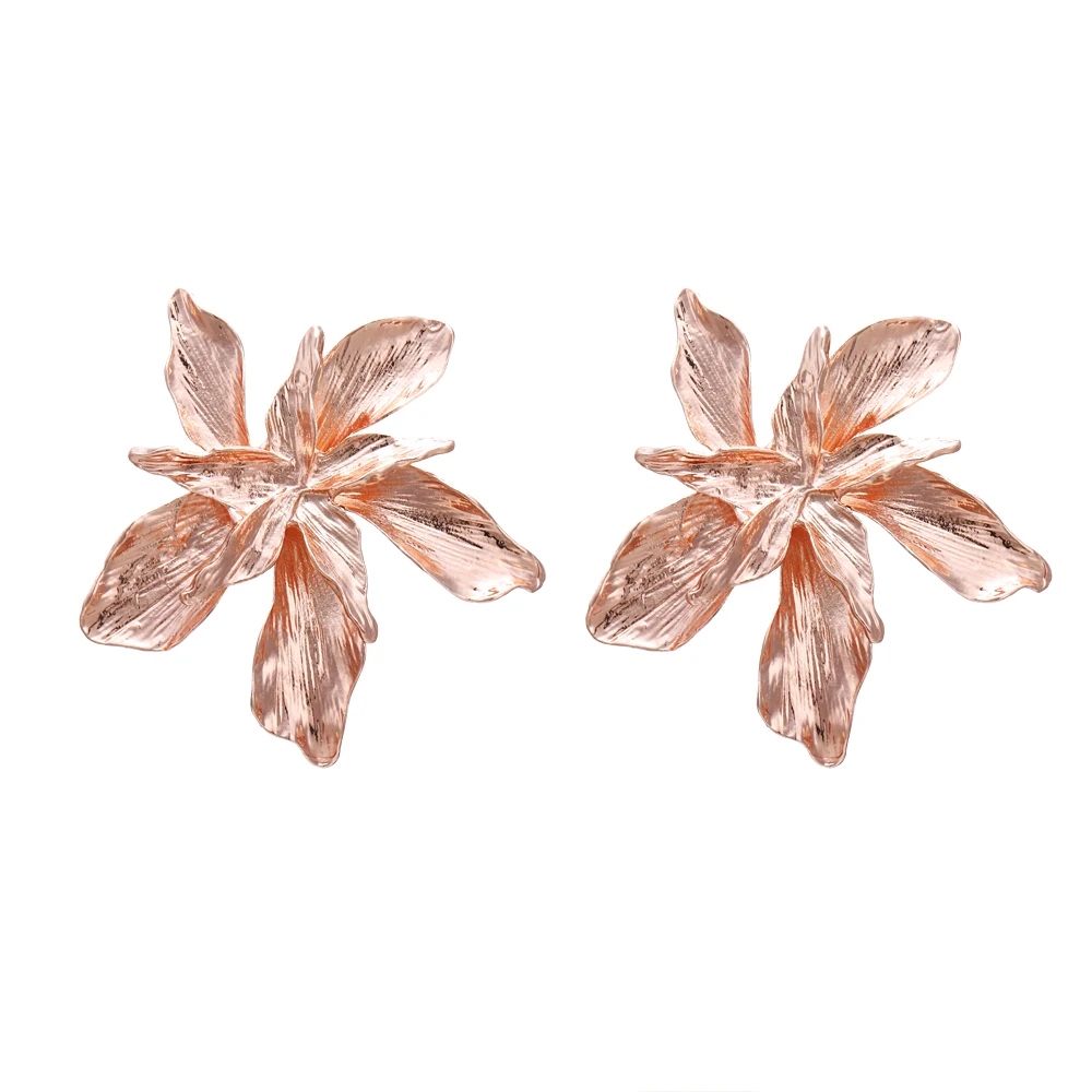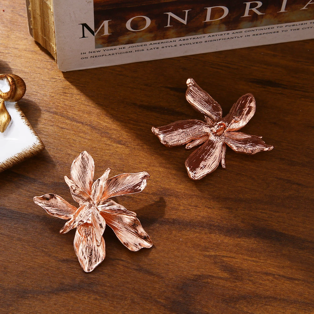 victoria’s vogue Elegance Gold Silver Color Big Flower Drop Dangle Earring for Women Trendy Metal Floral Earrings Party Jewelry Pendientes