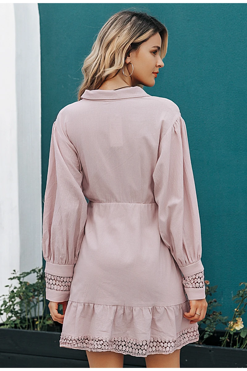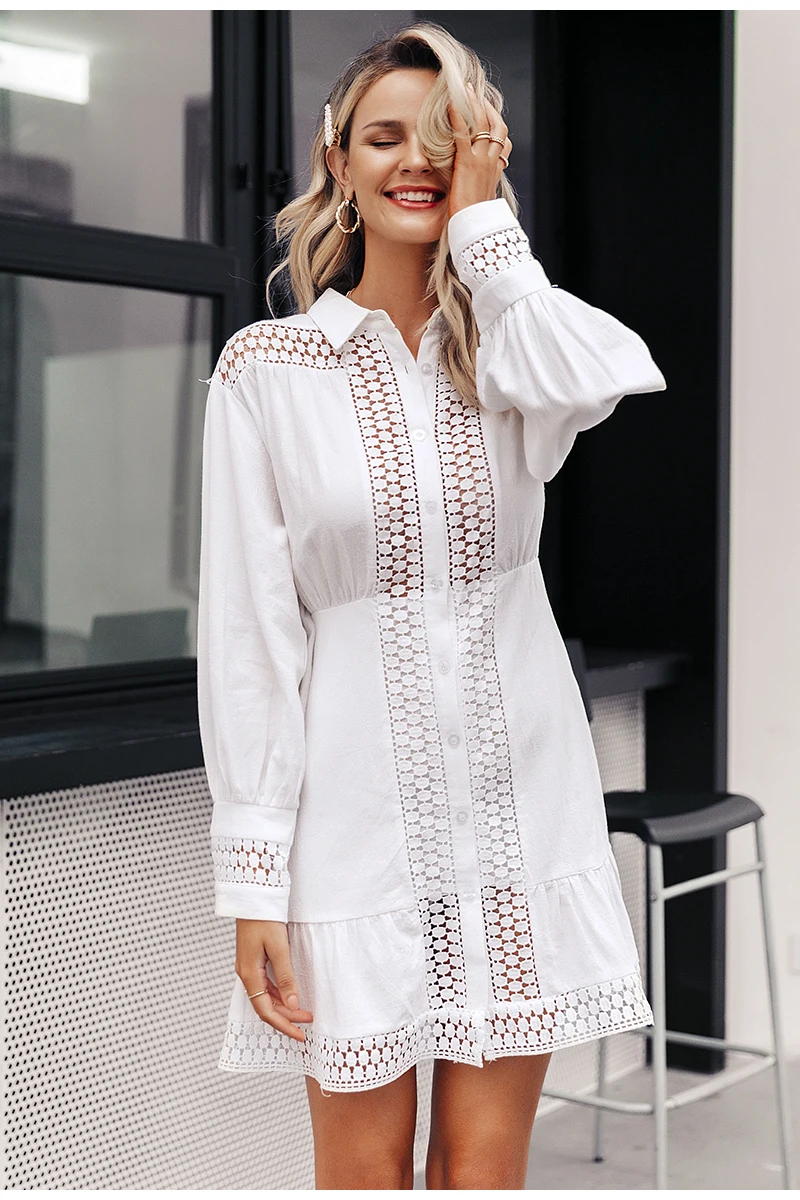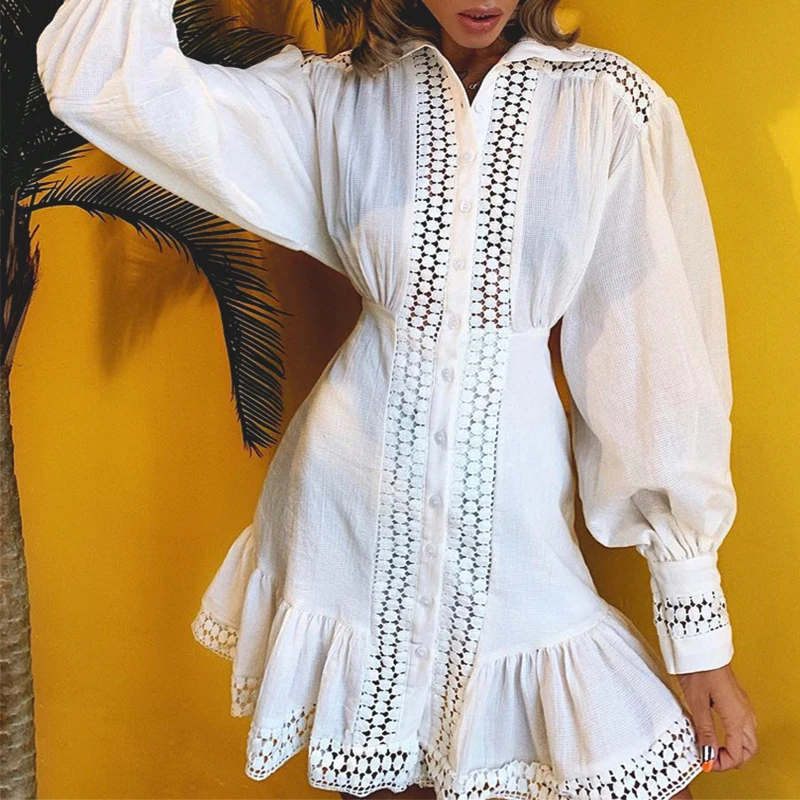 victoria’s vogue Elegant cotton lace women dress Long lantern sleeve ruffle A-line white short dress Hollow out party winter dresses 2022