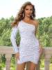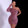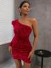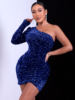 Victoria’s Vogue Elegant Dress Black One Shoulder Sexy Cocktail Dress Summer Dress Fashion Irregular Sleeveless Sequin Dress For Party