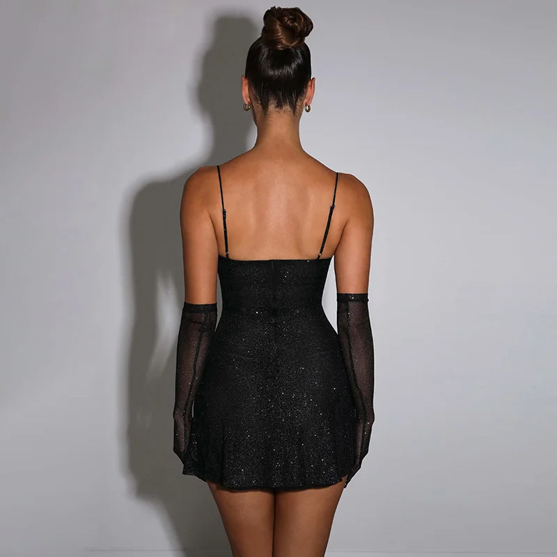 Victoria’s Vogue Elegant Glitter Sexy Mini Dress For Women Elegant Off-shoulder Backless Bodycon Night Club Party Short Dress Vestido